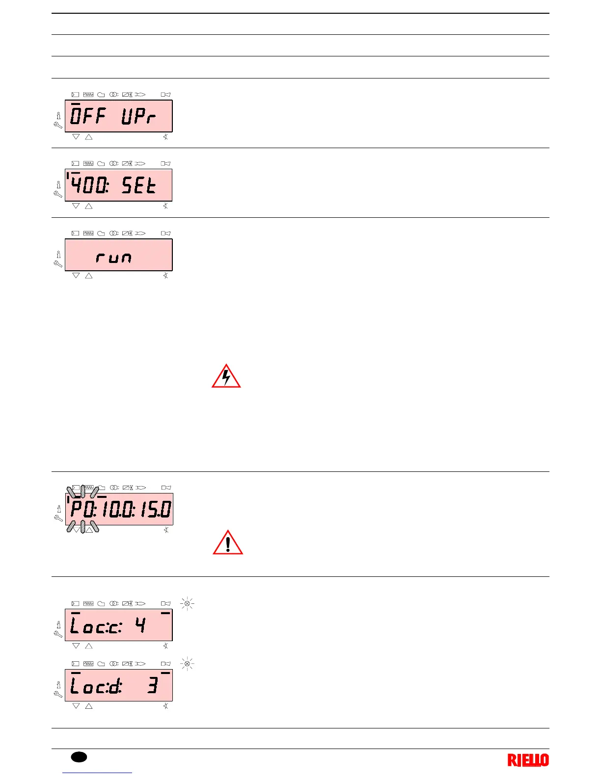 If the control box goes into lockout, press the keys “+” and “-” (esc) simultaneously: the