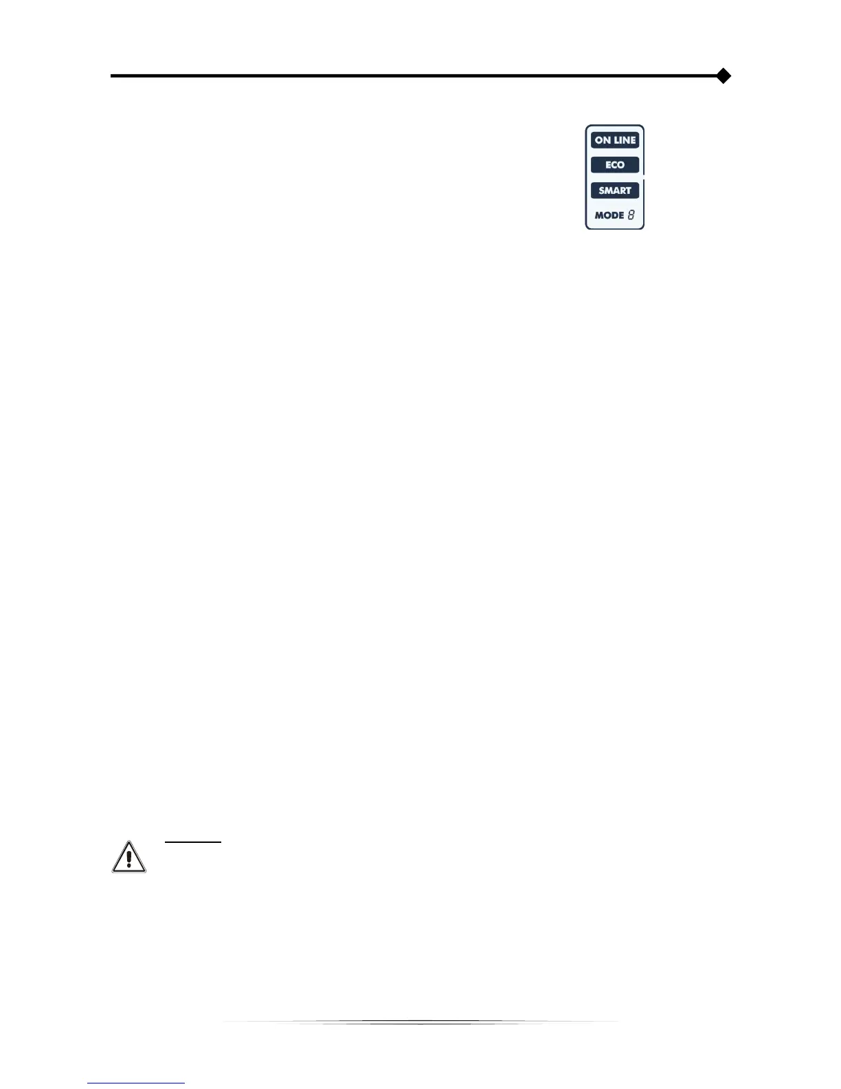• SMART ACTIVE: in this mode, the UPS decides whether to operate in ON-LINE or ECO mode according to a