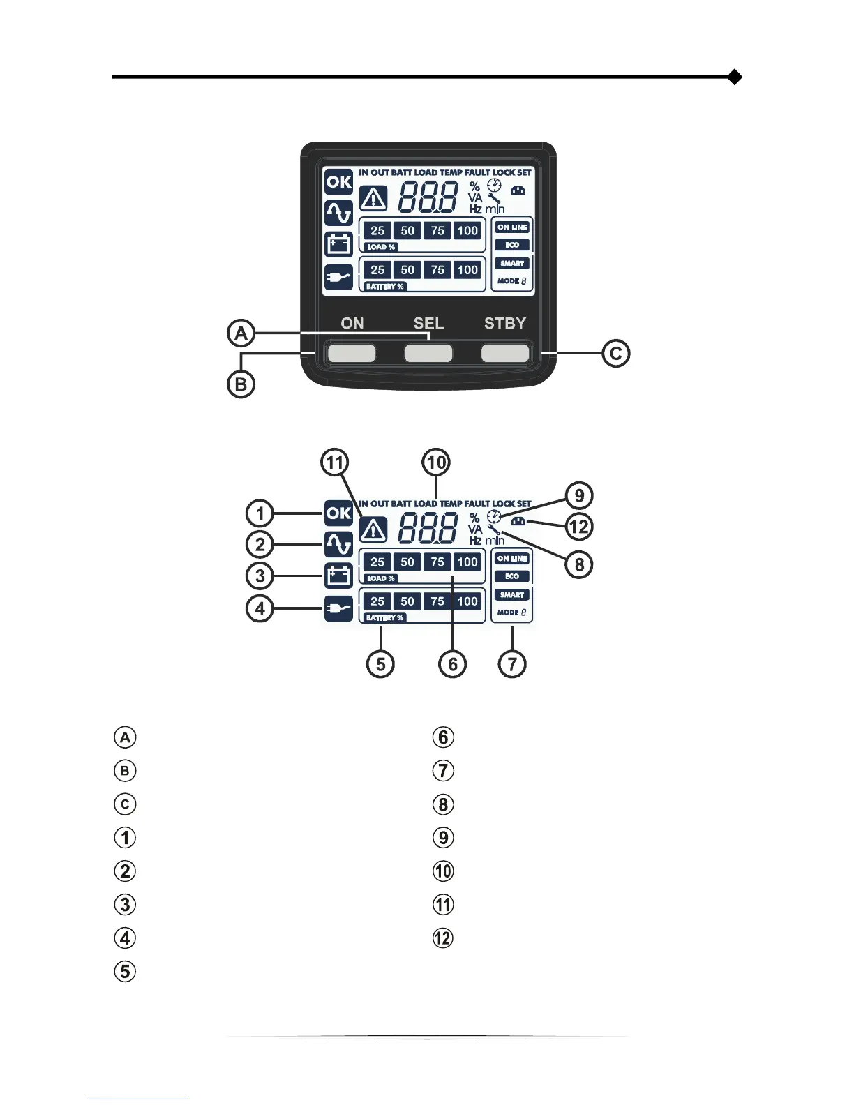 Riello SDH 3000 - Display Panel Overview; Panel Components and Indicators