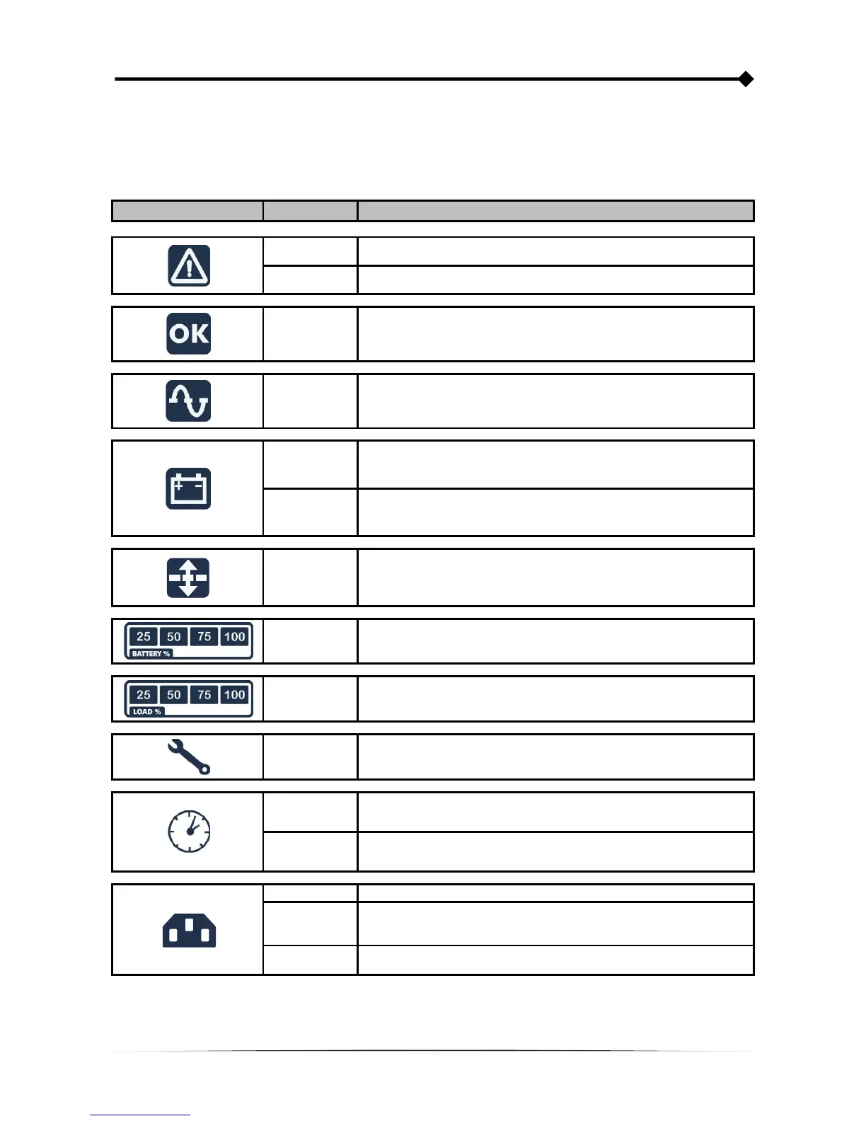 Low battery pre-alarm. Indicates that battery autonomy is coming to an