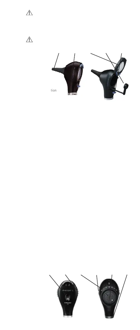 5) Push button for ear speculum ejection (L3 only)