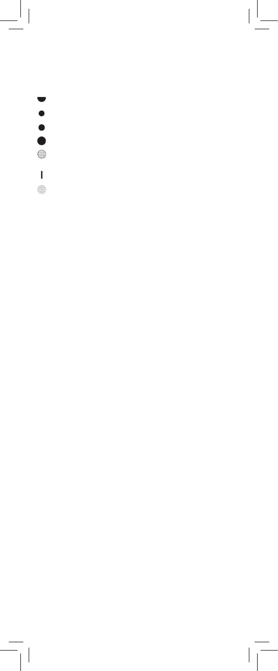 Demi-lune, petit/moyen/grand spot, étoile de fixation, fente et grille.“