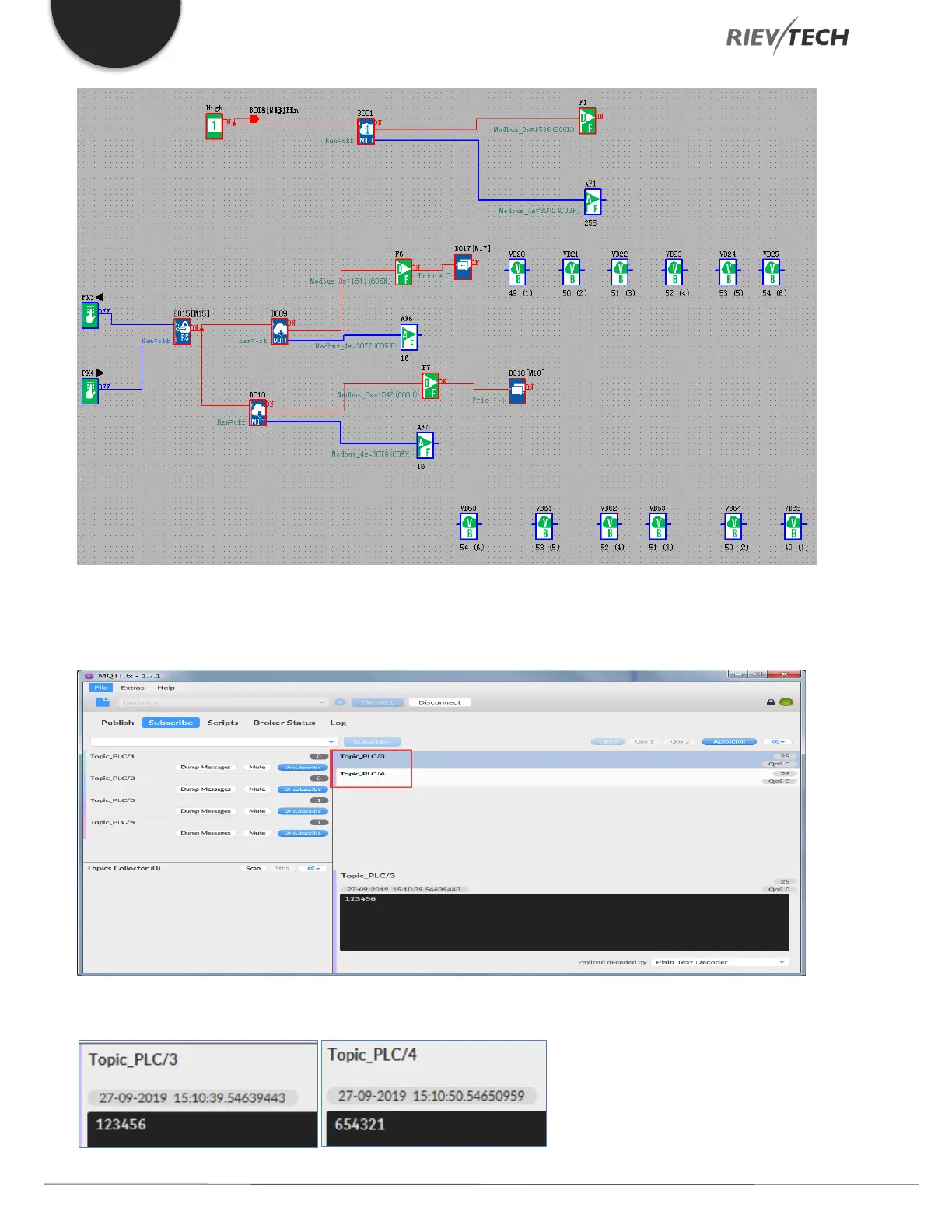 This indicates that the subscription to Topic_PLC/3 and Topic_PLC/4 was successful.