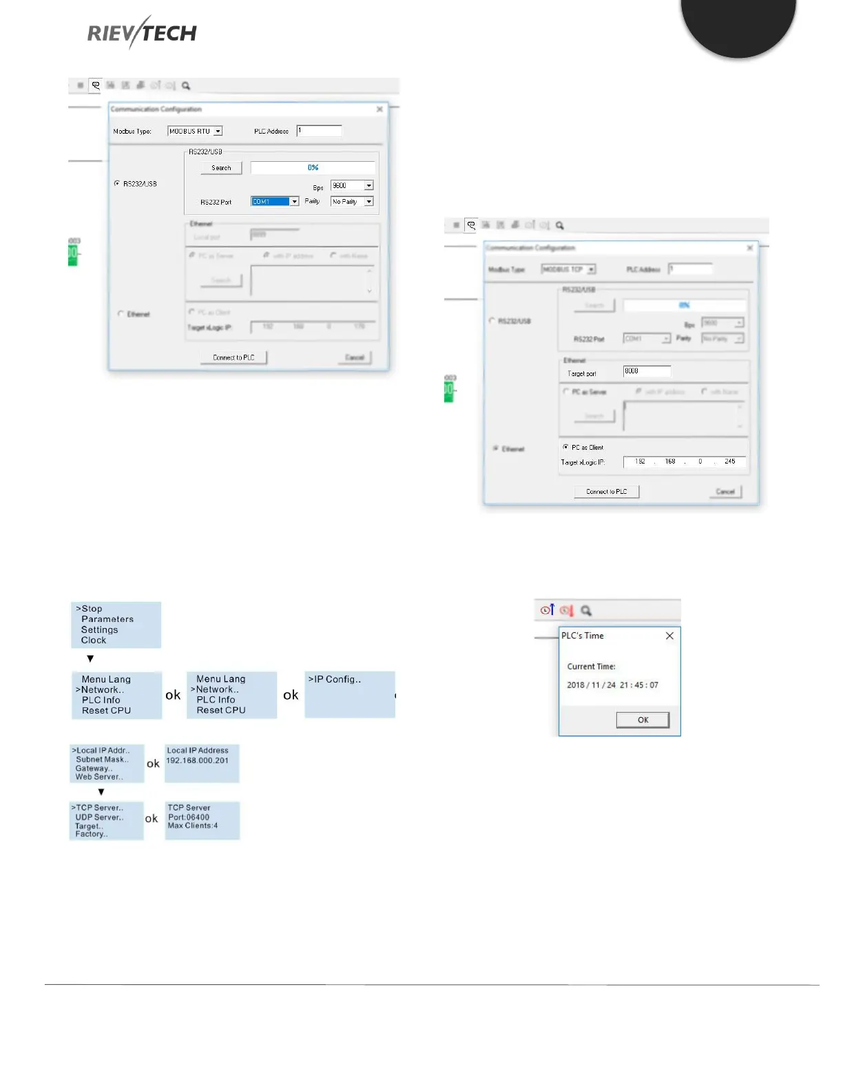 First check the PLC address using the LCD menu.