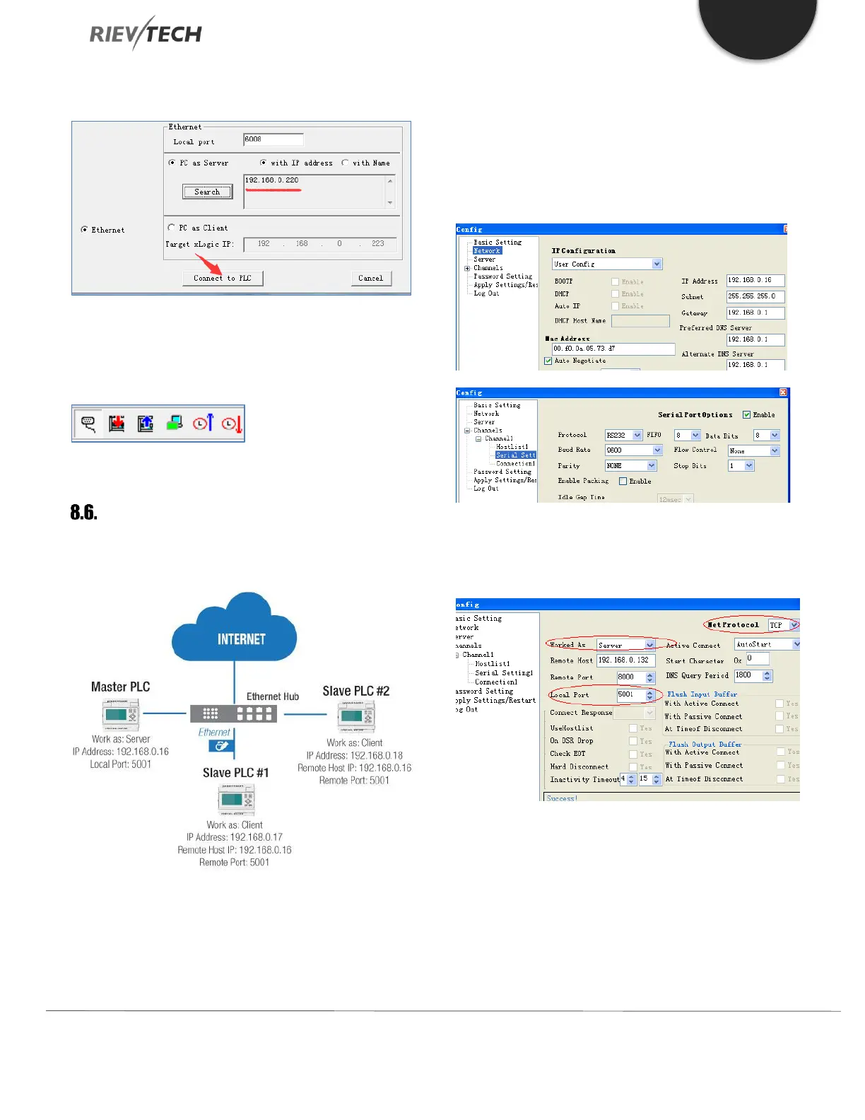 Master PLC works as Server. Its IP address is 192.168.0.16