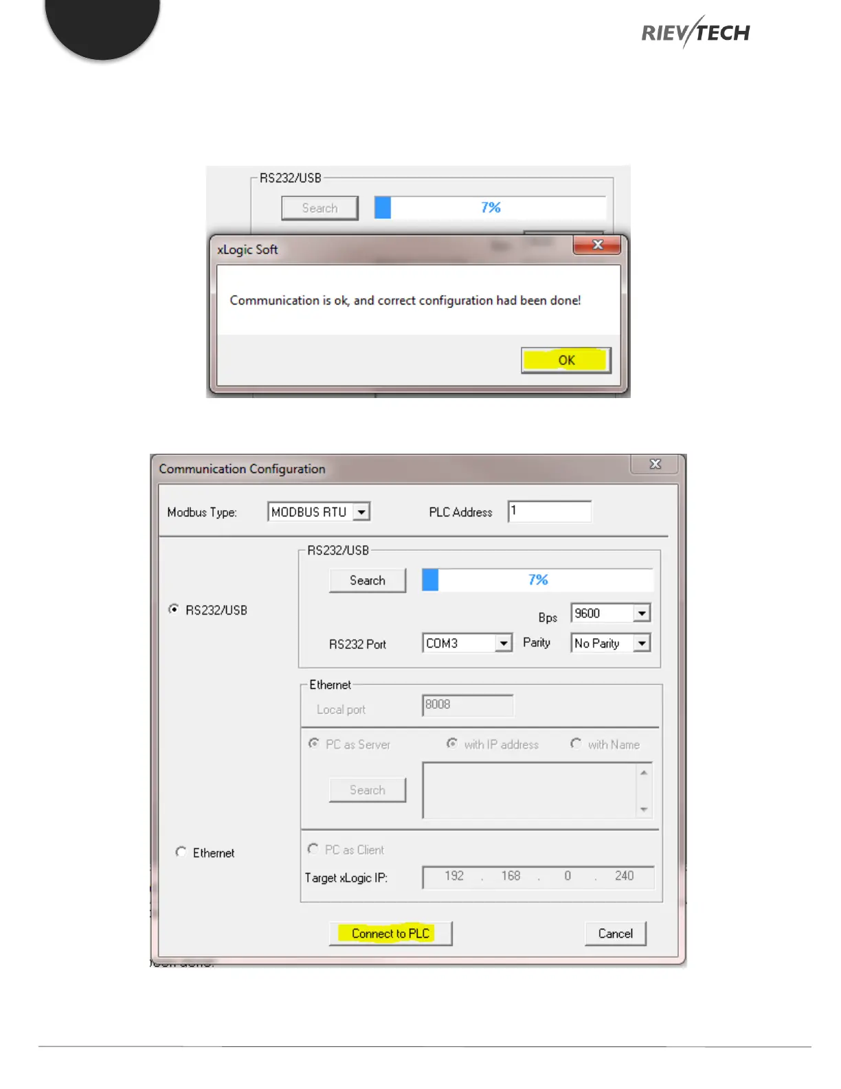 5. Click Connect to PLC button to establish connection