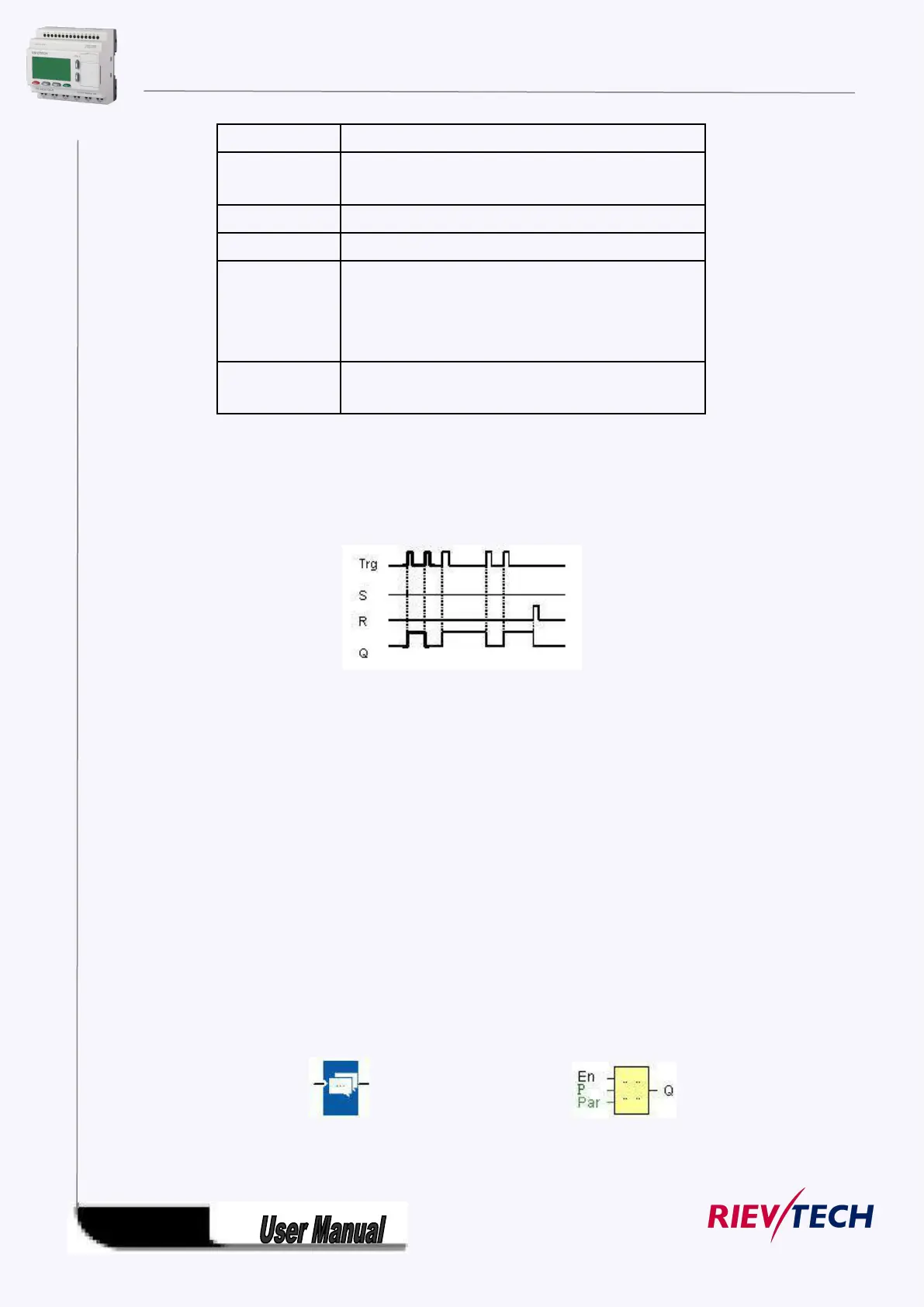 The status of output Q changes with each 0 to 1 transition at input Trg and if both S and R = 0, i.e. the