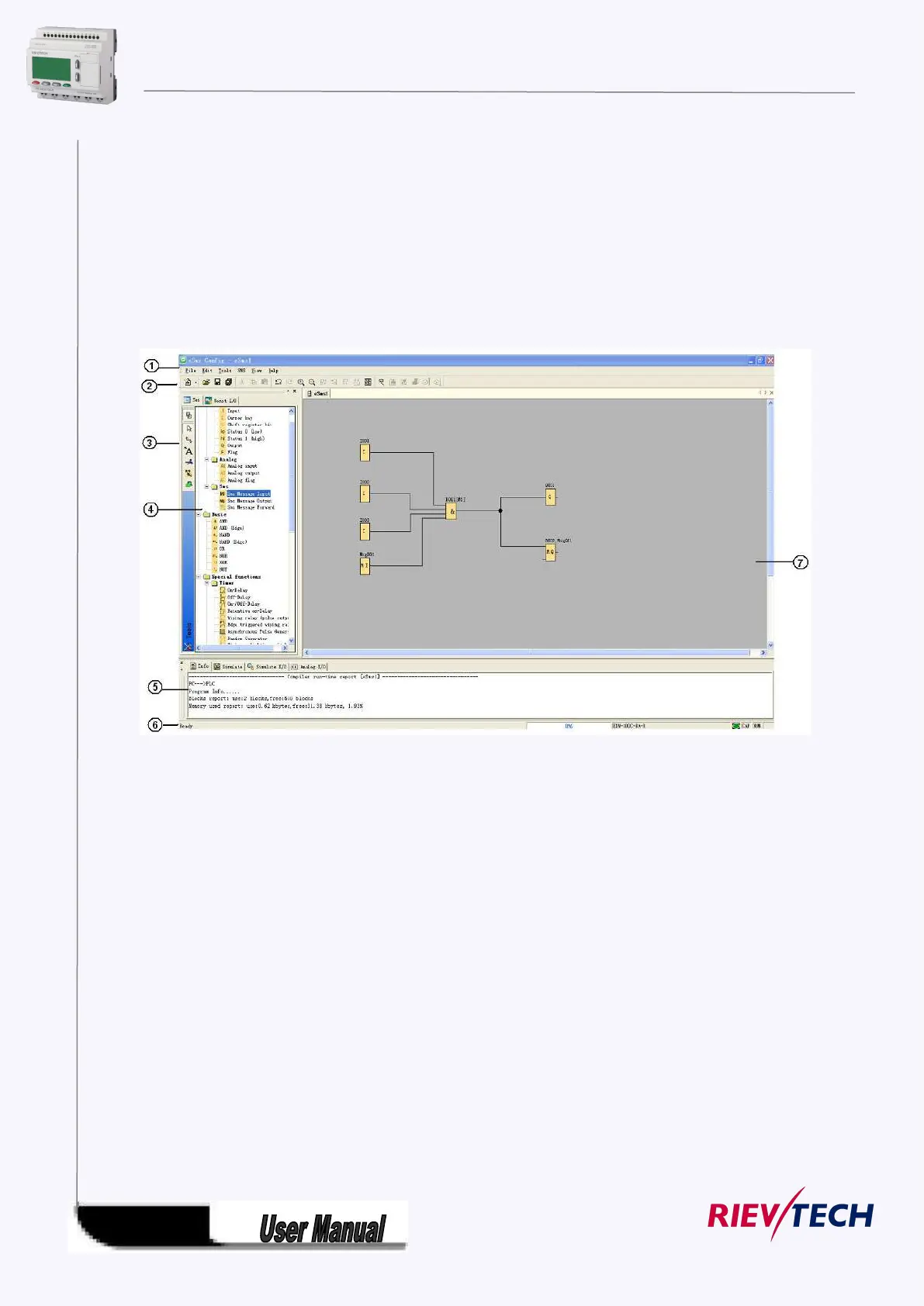 5. Info box (Display memory Info, IO status and analog IO values under simulation/monitoring mode)
