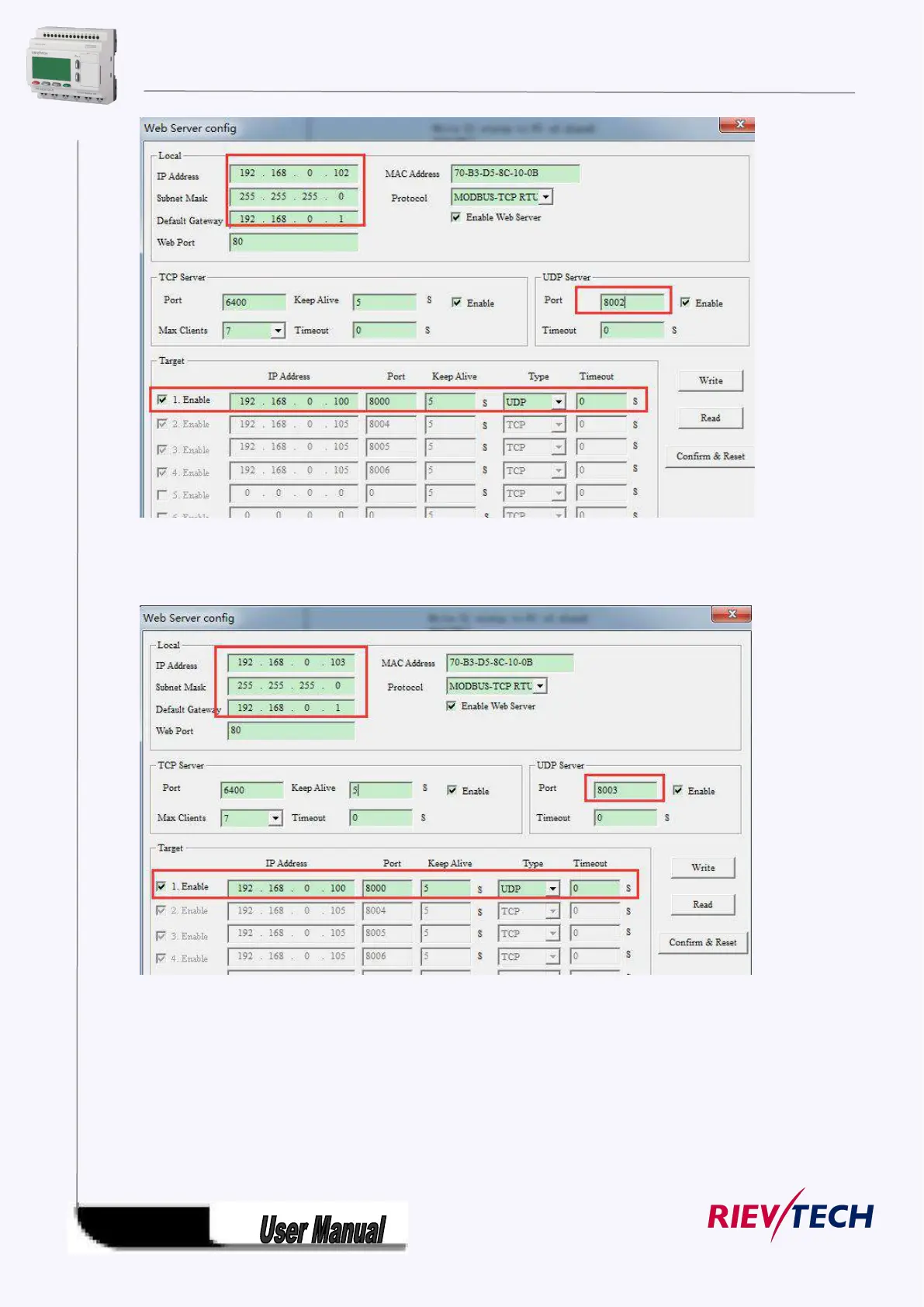 Target1: 192.168.0.100 UDP port:8000