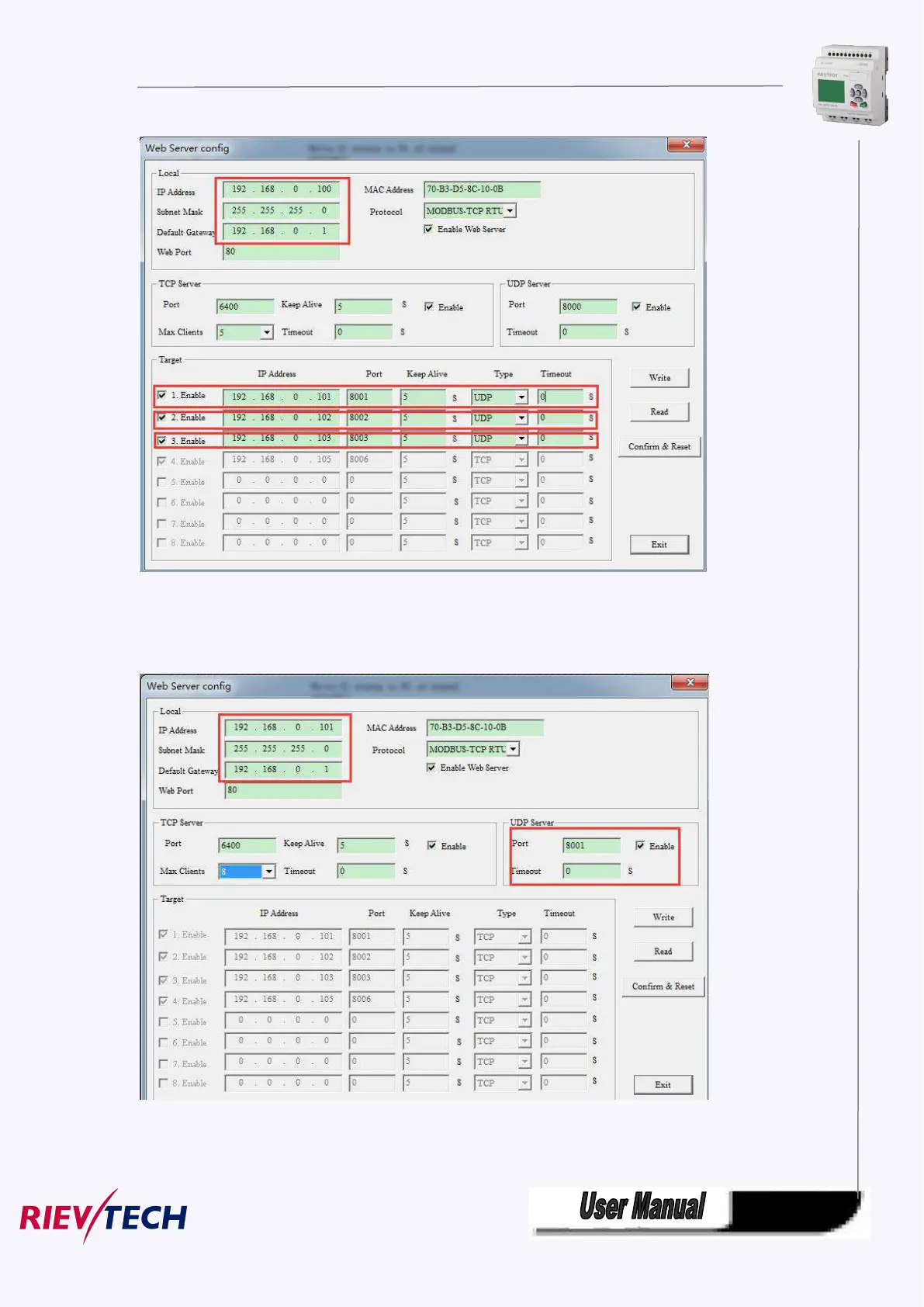 Target3 UDP 192.168.0.103, Port :8003