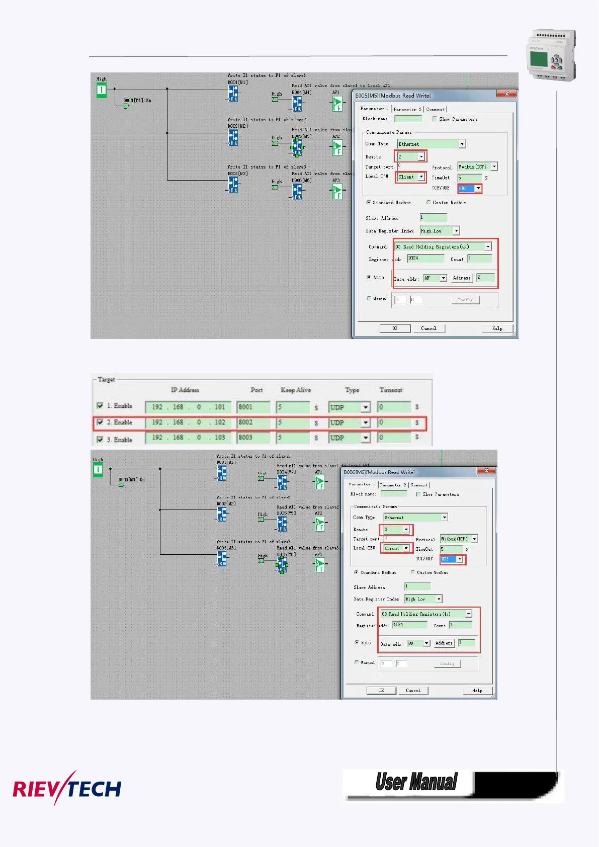 The Remote3 is the target UDP server setting in the network parameter: