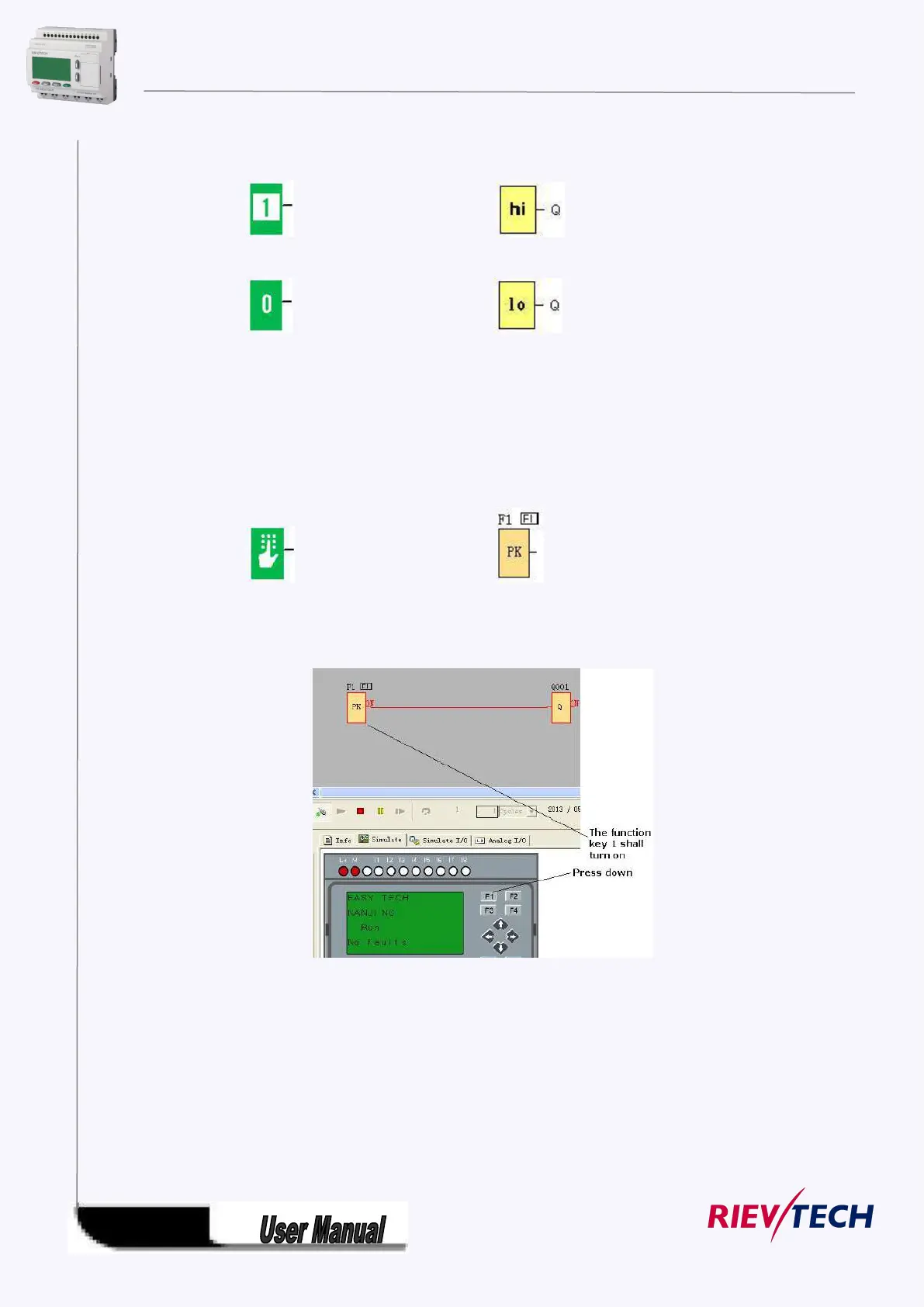 the status of the corresponding symbol in the program shall turn from 0 to 1. And it shall give off one high
