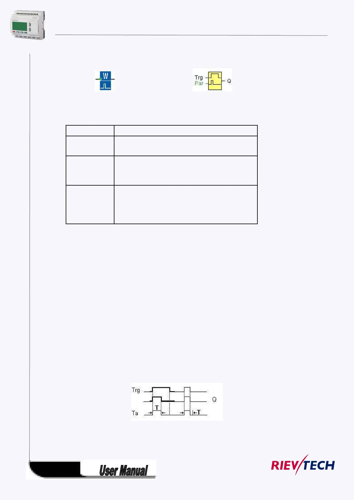 With the input signal Trg = 1, output Q is set to 1. The signal also triggers the time Ta, while the output