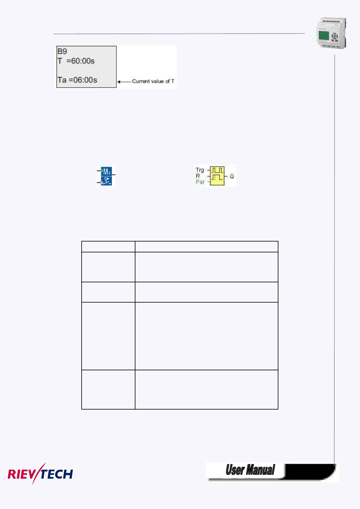 Output Q is set with a signal at input Trg, and it is reset