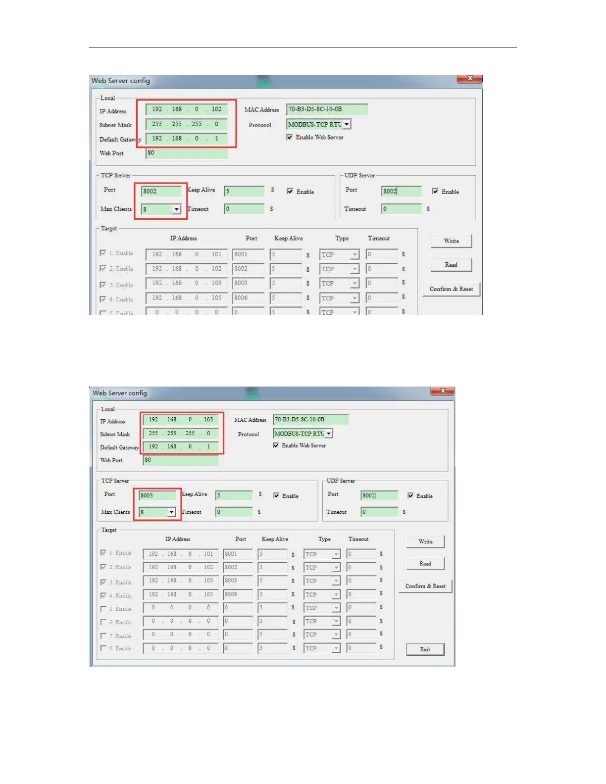 TCP server port:8003