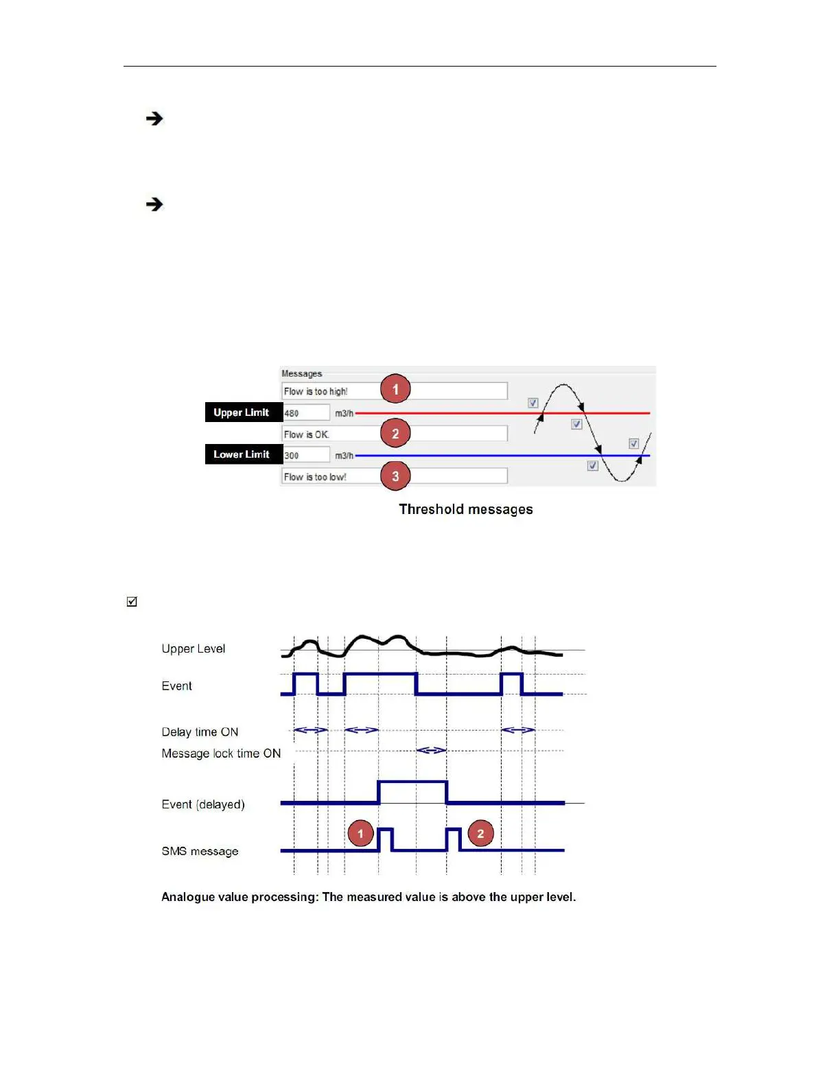 The system is not in its normal status. The upper limit is exceeded. A message is sent (if thisis activated by