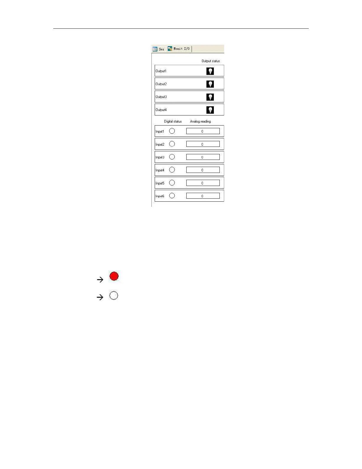 Digital IO status and analog input value can be displayed.