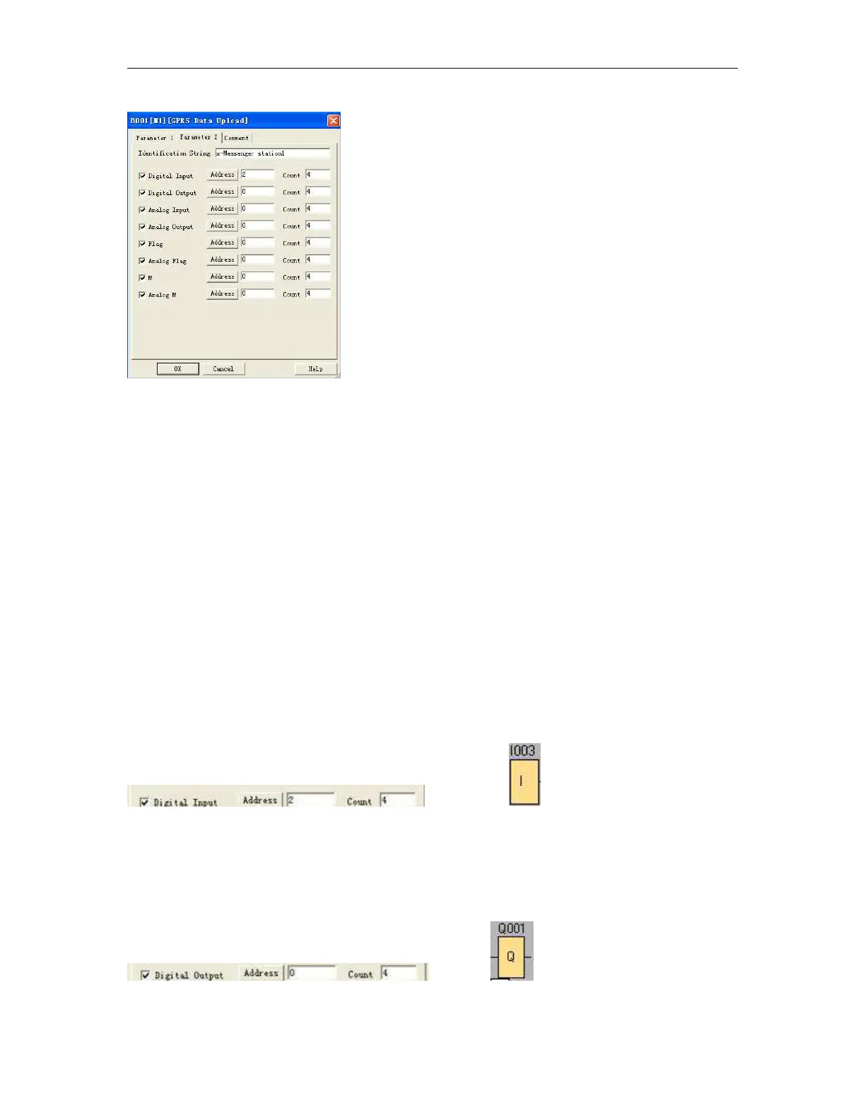 01 : status of the digital inputs(I3=1,I4=0,I5=0,I6=0)