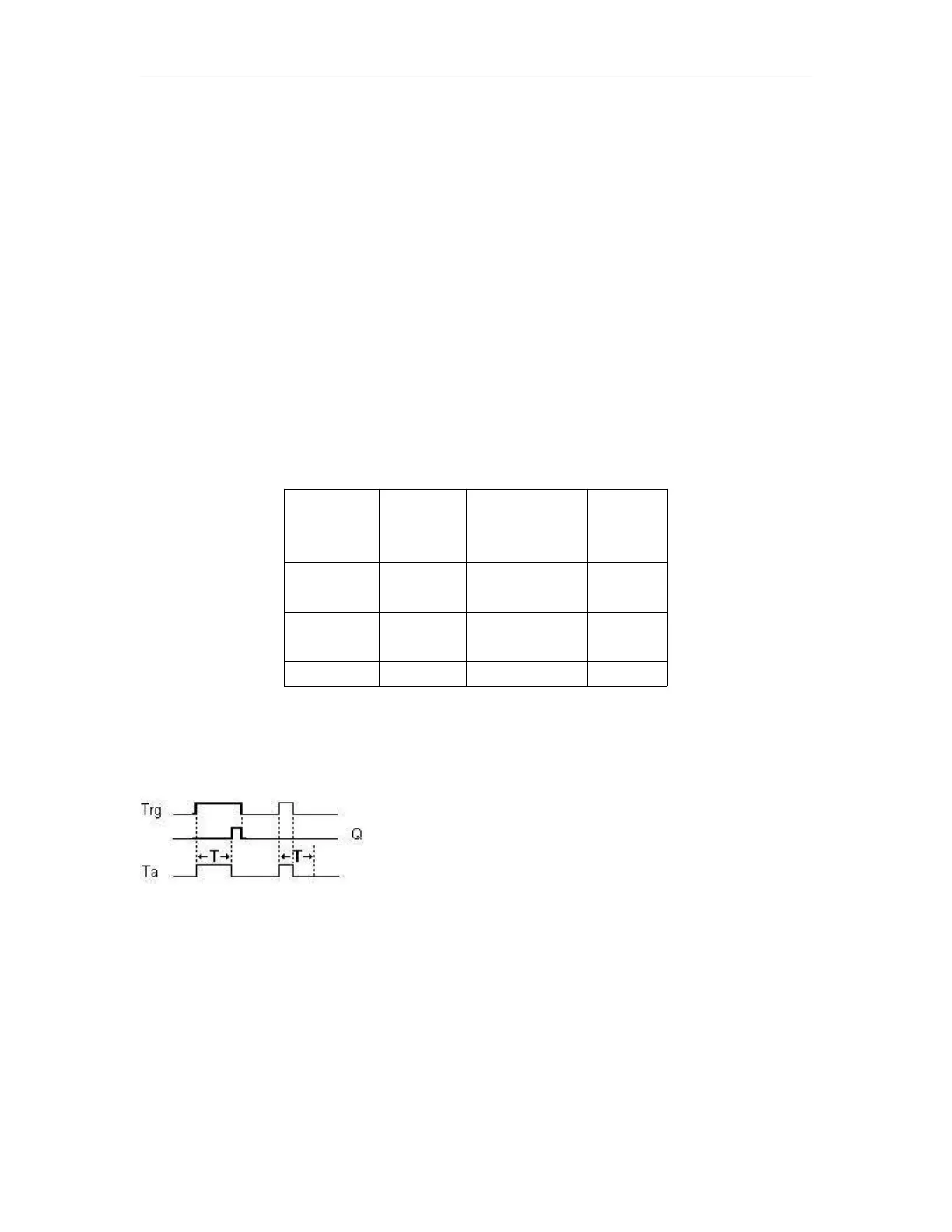The time is reset if the status at input Trg changes to 0 again before the time T has expired.