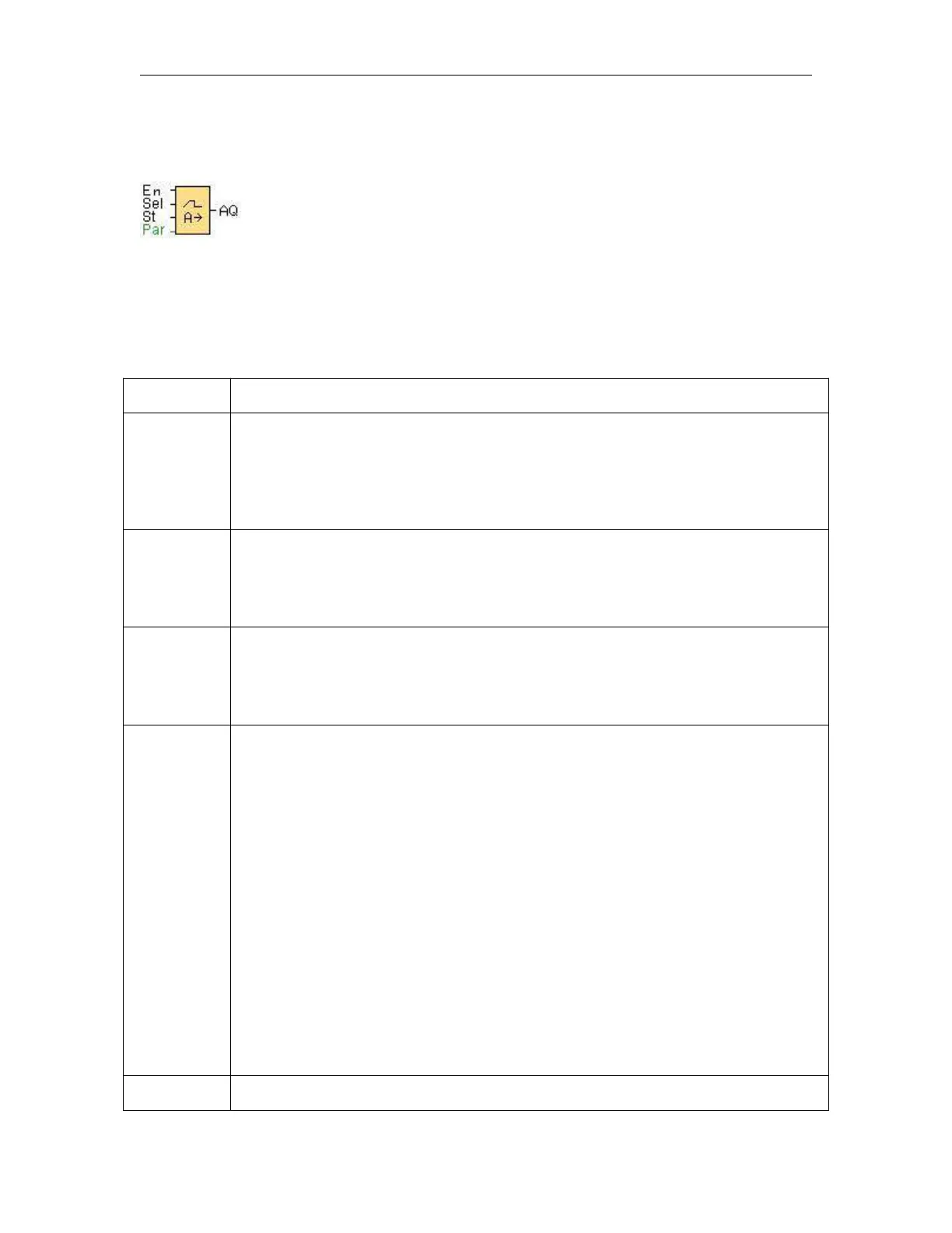 A change in the status from 0 to 1 at input EN (Enable) applies the start/stop level (Offset "B"