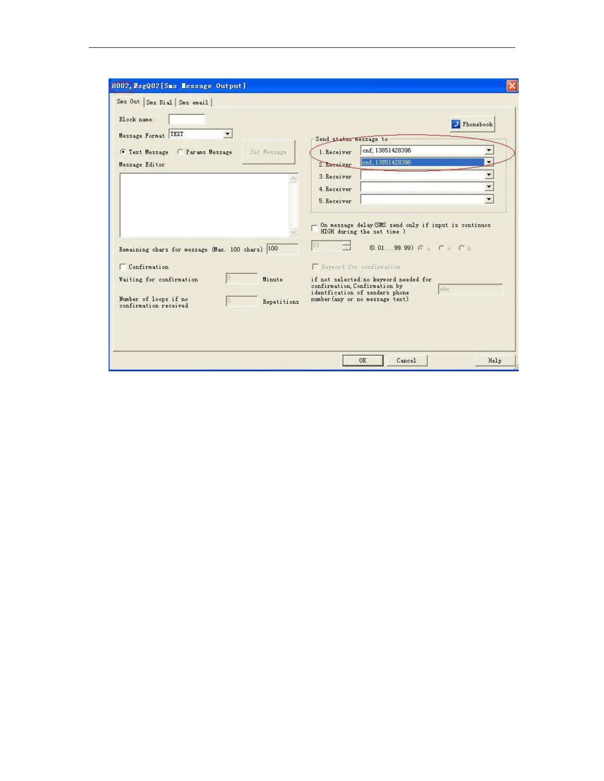 ,consequently, the receiver1 & receiver2 of the B002 function block and receiver1 & receiver5 of B003 shall