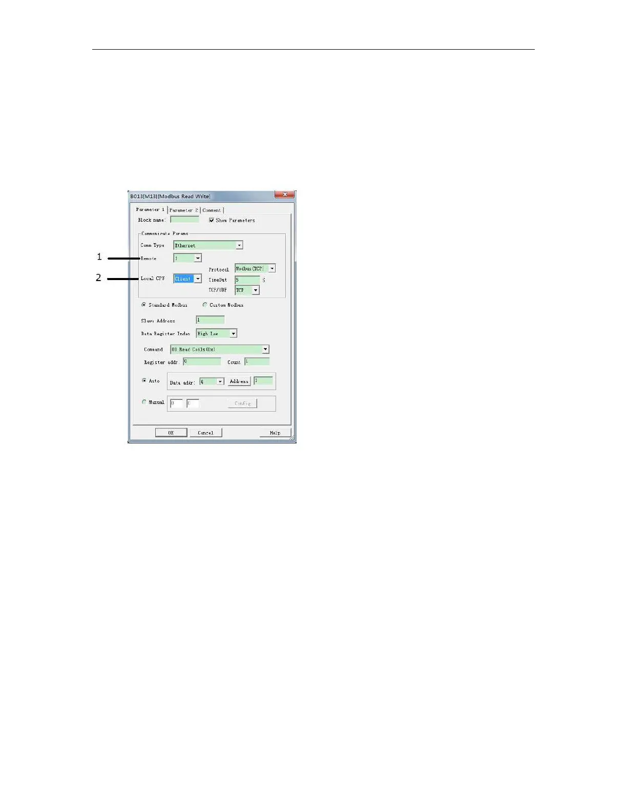 The Property in dialog box of Modbus Read Write shows as below figure: