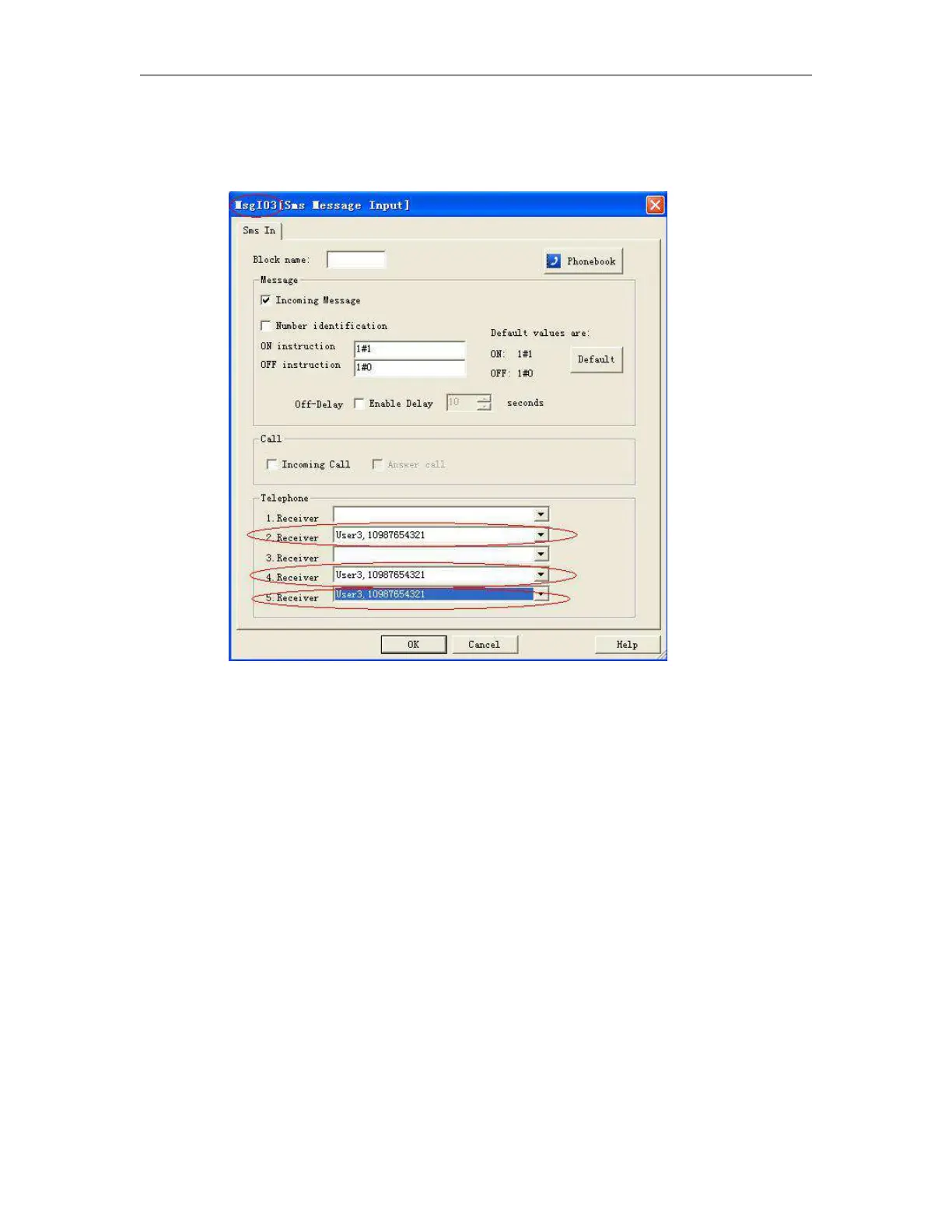 How to modify the all the receiver number of sms message input blocks in the program ?