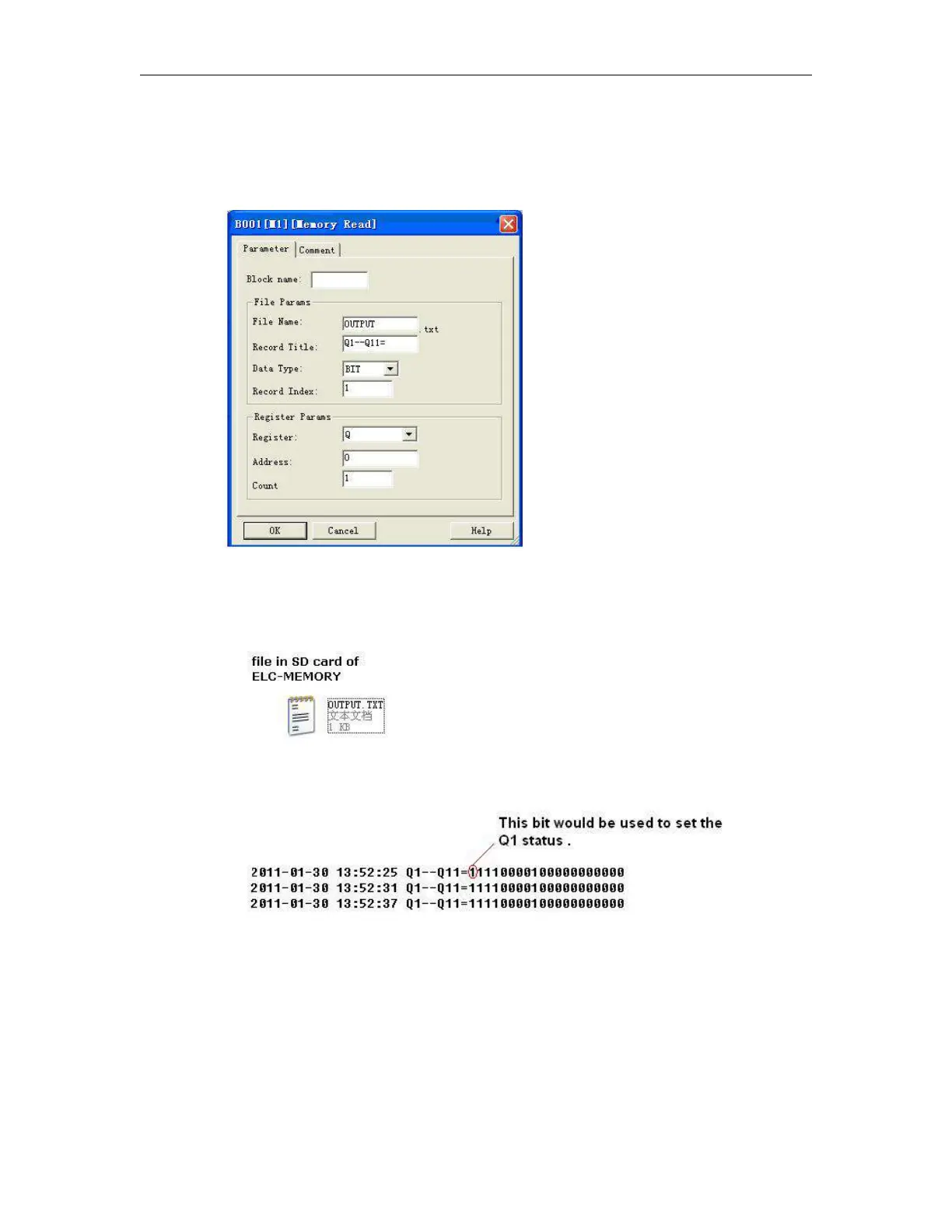 If the Memory Read block had been triggered, the Q1 of ELC-12 CPU will be set ā€œ1ā€.