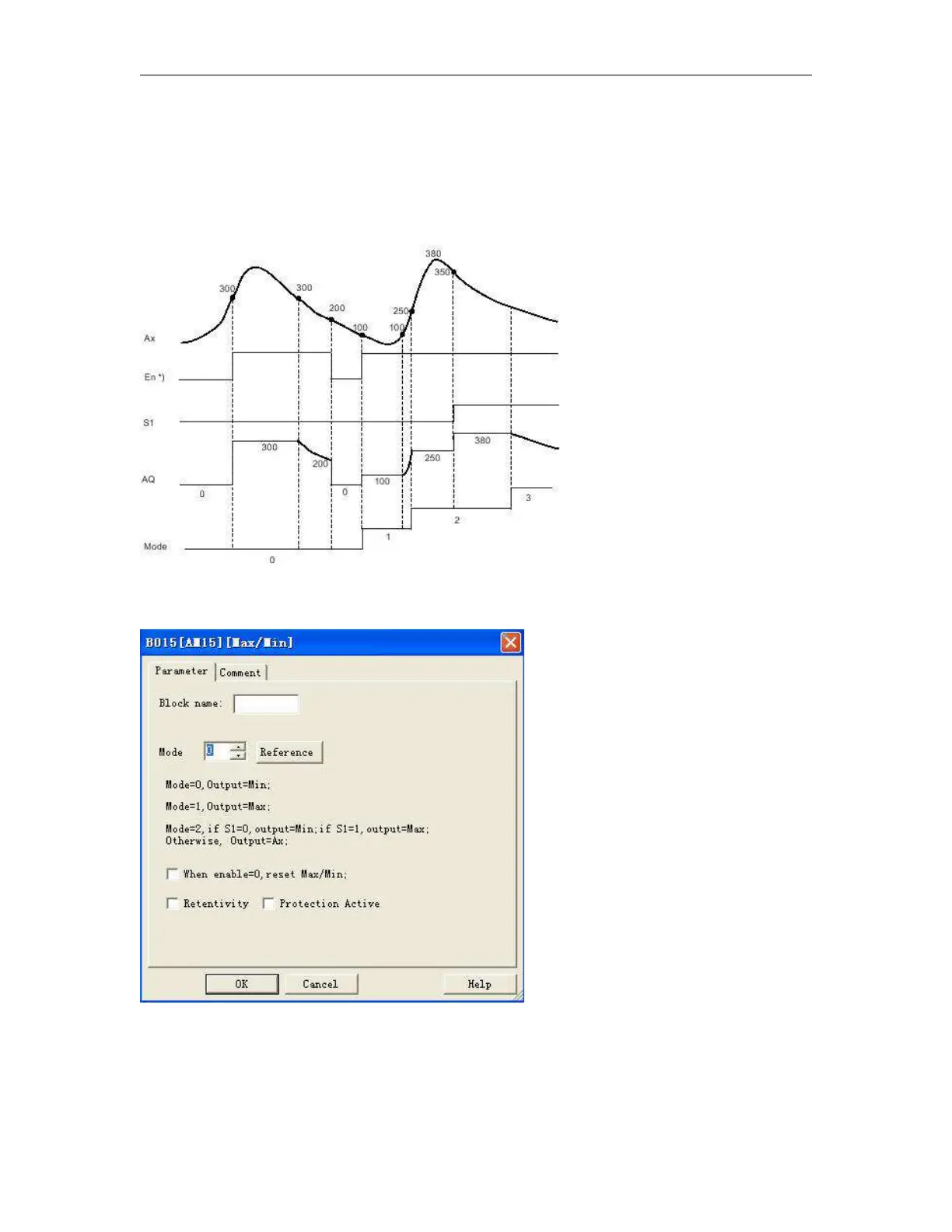 *) If you select the check box "when En = 0, reset Max/Min"