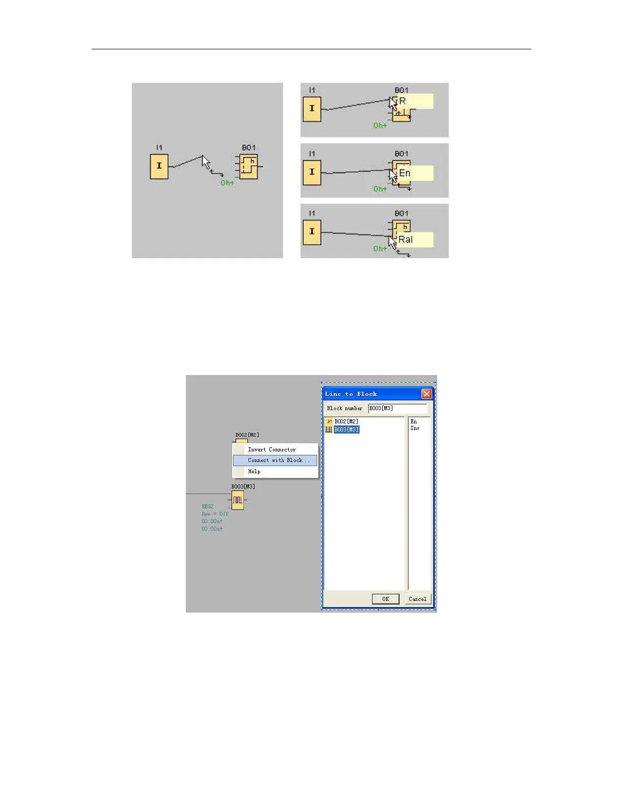 block. In the shortcut menu, click the Connect with block menu command. This calls a selection list that