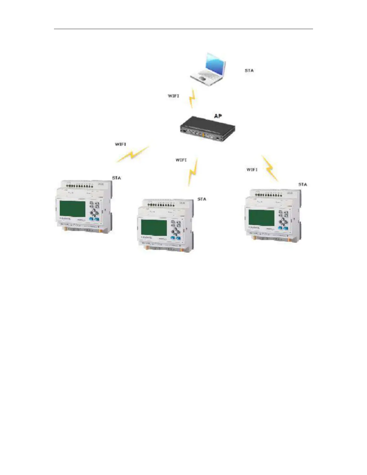 and the laptop are STAs connected to HF-A11 (1). Meanwhile, all HF-A11 modules can connected