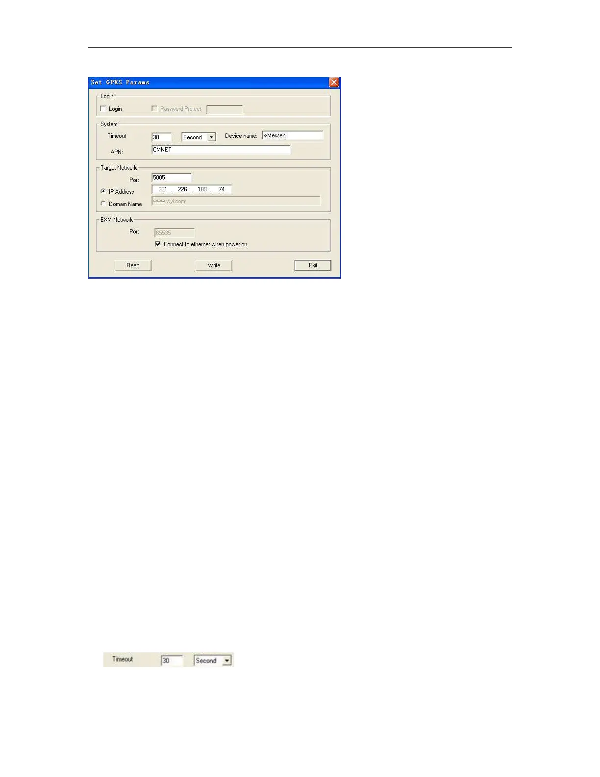 TIMEOUT"60", (This is to change the time out period, the unit is “second” and the minimum value is