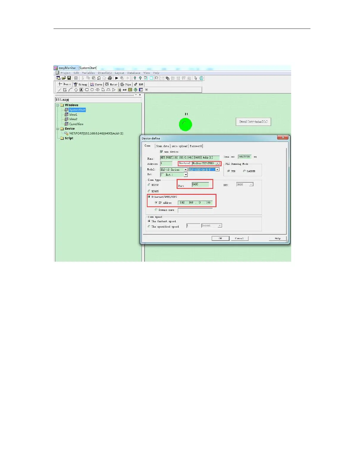 You need set the correct IP address and com port in the device configure of the easySCADA.