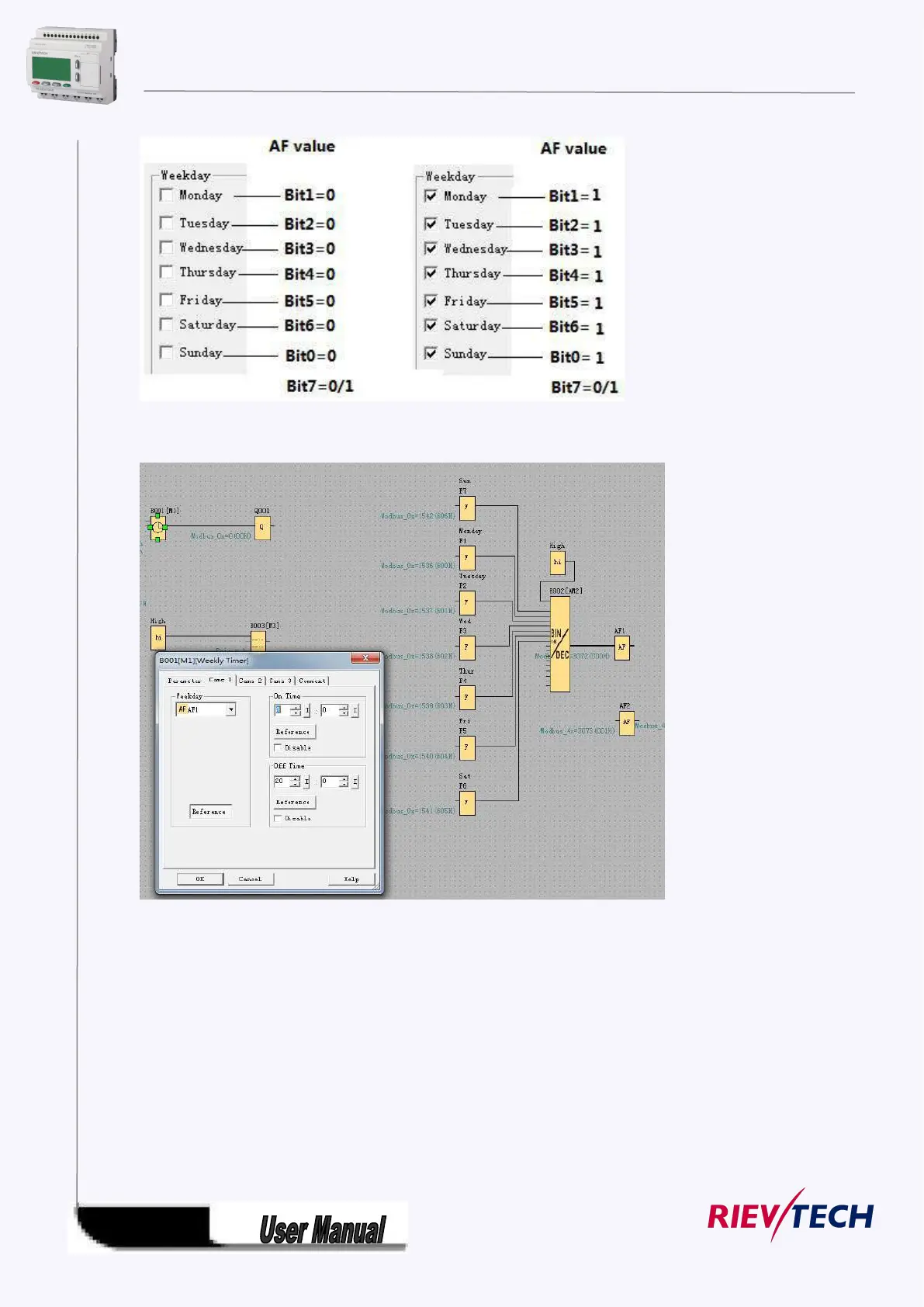 You can program as above, use one Bit to word block and then, you can set the F1--F7 at the touch screen