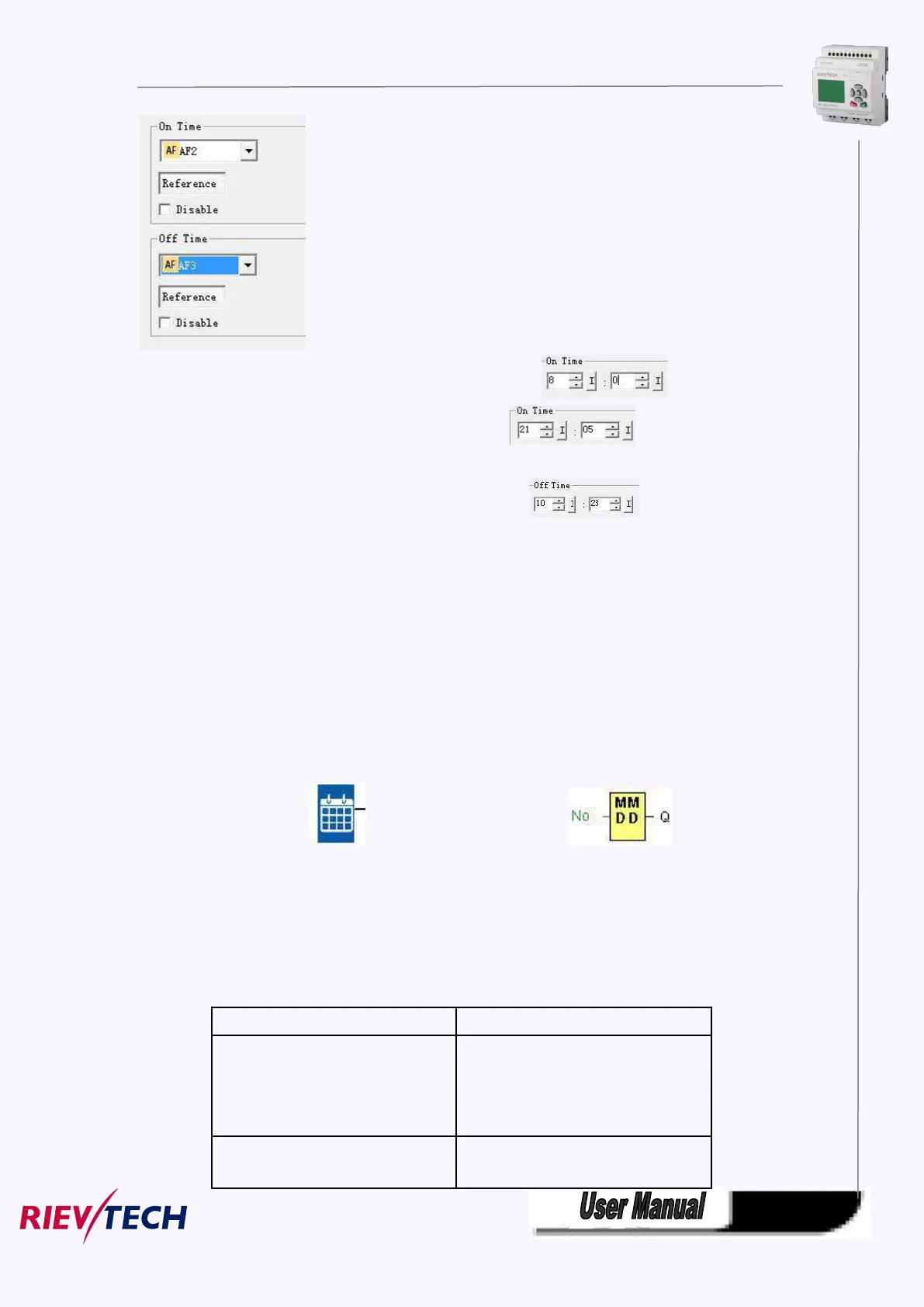 If the AF value is over 2323, it will be not available for the On/Off time, the output of the weekly timer will