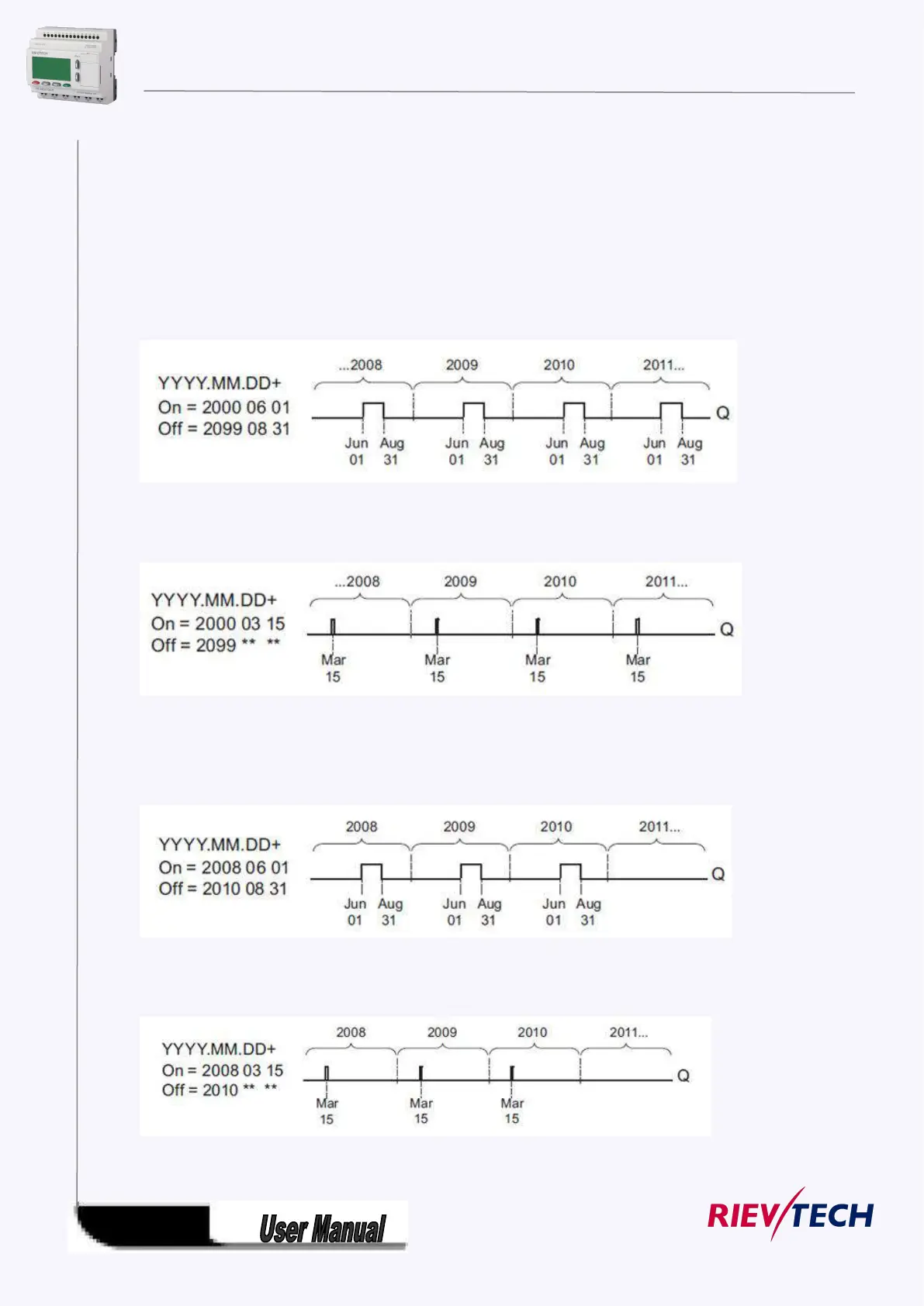 2010-**-**: On March 15 of 2008, 2009, and 2010, the timer output switches on for one cycle.
