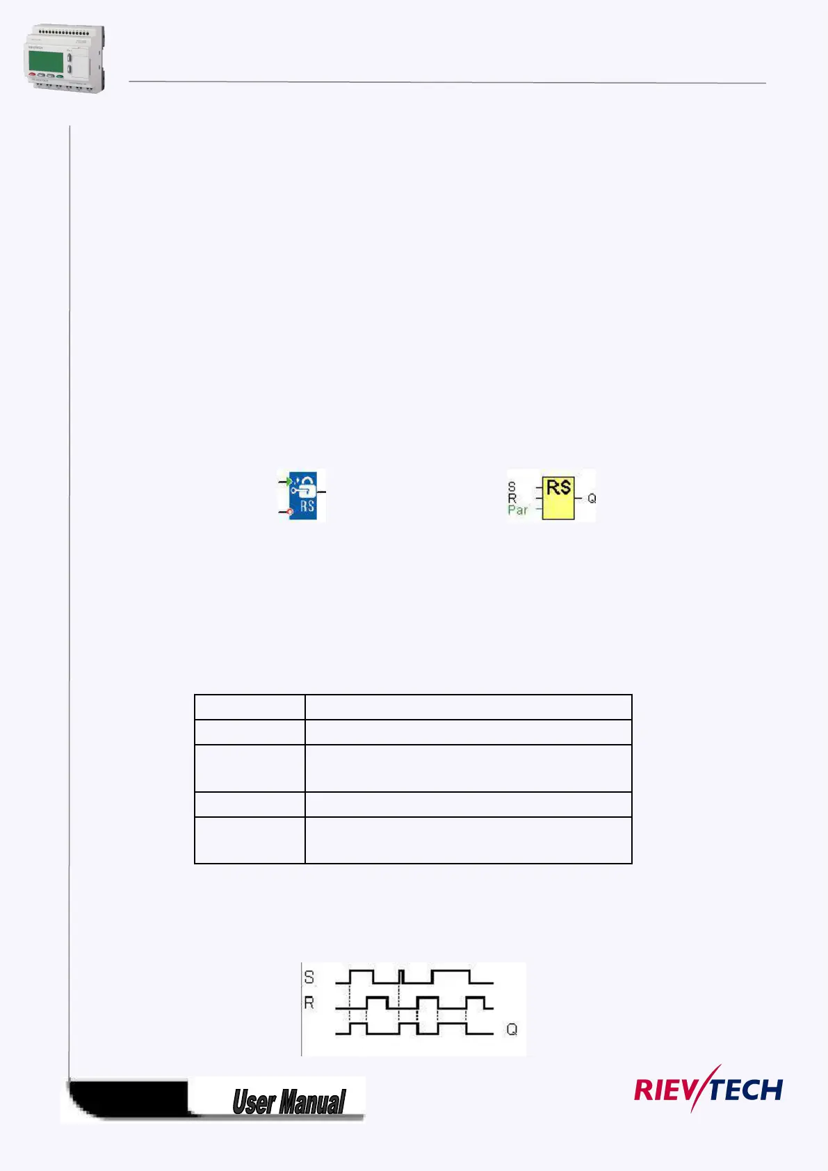 A signal at input S sets output Q. A signal at input R resets output Q.