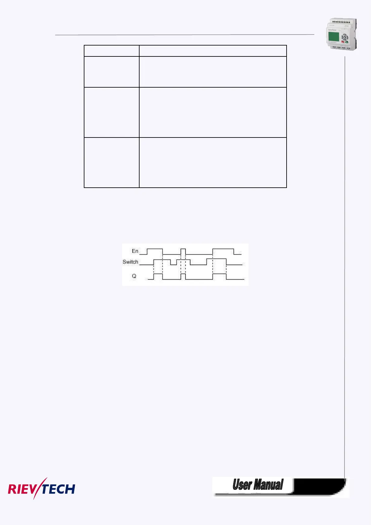 Output Q is set with a 0 to 1 signal transition at input En