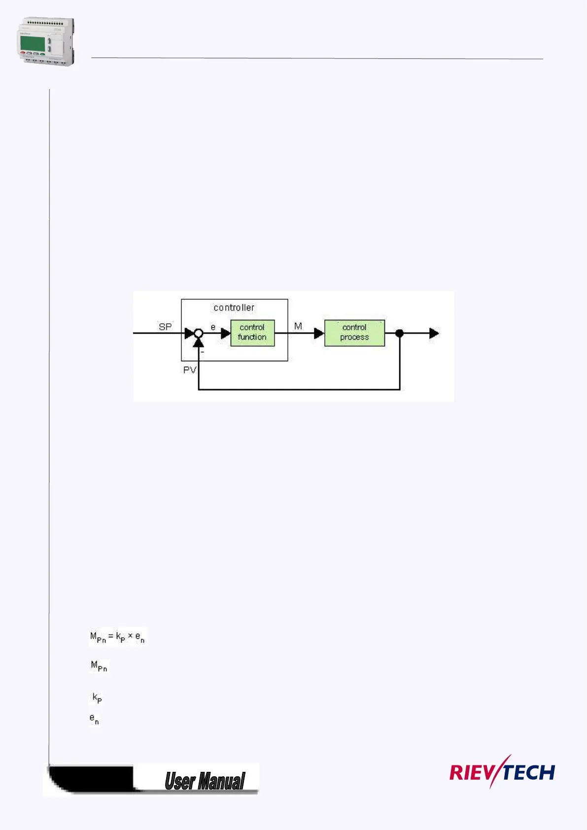 A proportional-action controller (P controller) changes the manipulated variable M proportional to the