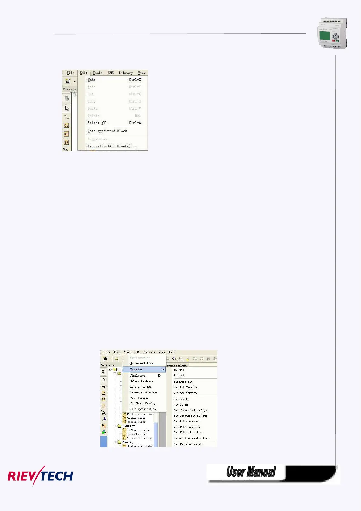 communication situation of xLogic, program management and simulation and so on. The pull down menu