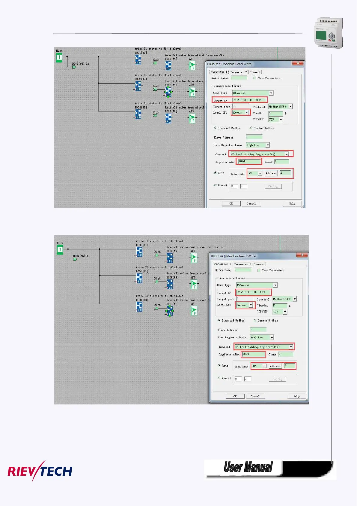 If B005 is enabled, the master will read the AI1 value(modbus address 4x 1024) of slave2 and save into