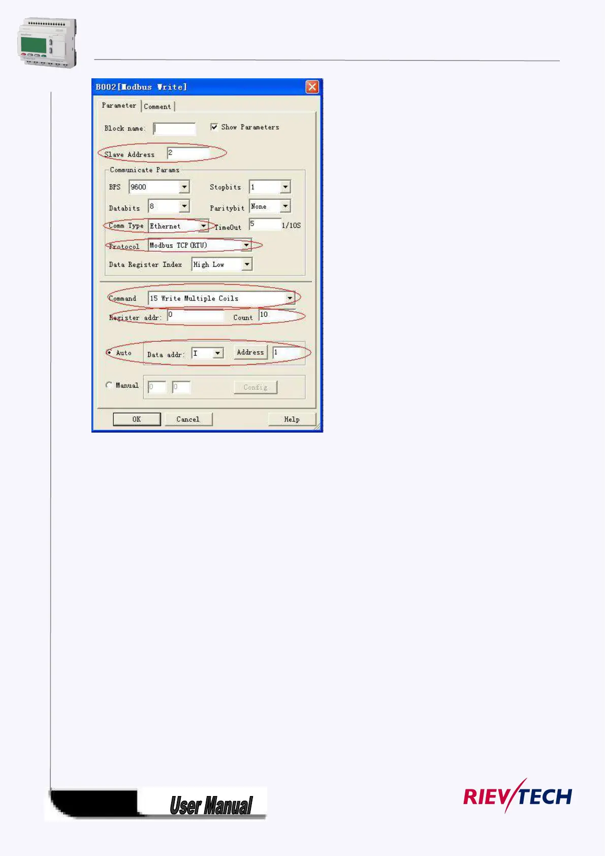 B005: Read the I1--IA status from the slave1 to the F11-F20 of the master. Setting as follows: