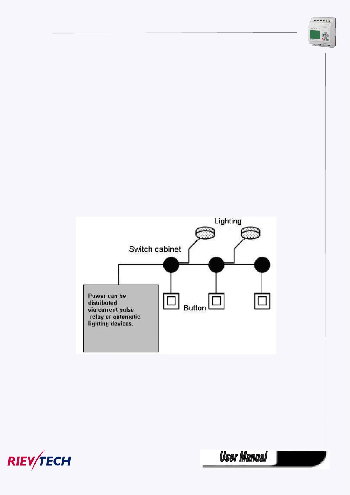 Pulse relay: When the lights are off, press any of the pushbuttons to switch on the lights. When the