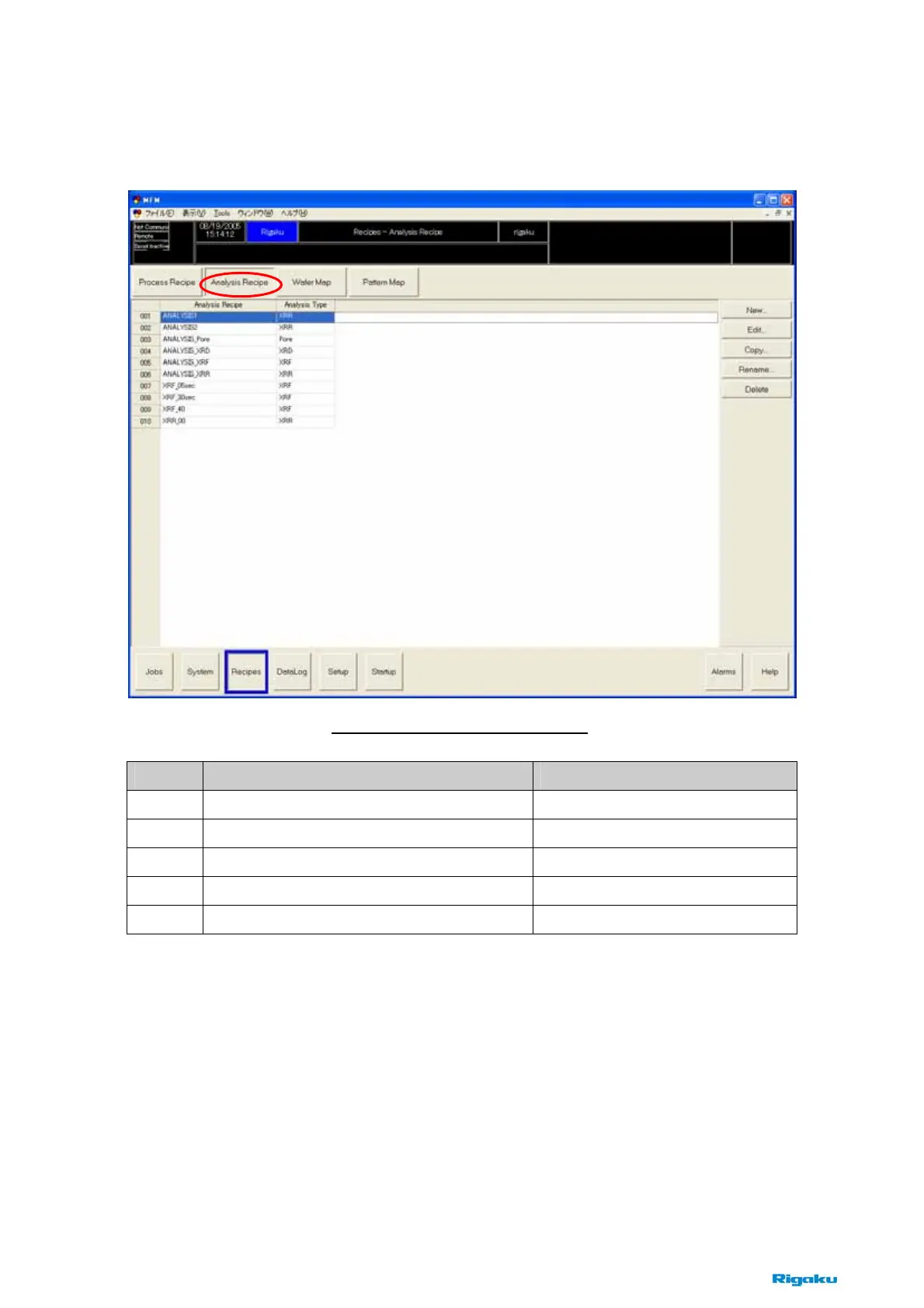 Click [Analysis Recipe] among the sub-navigation buttons.