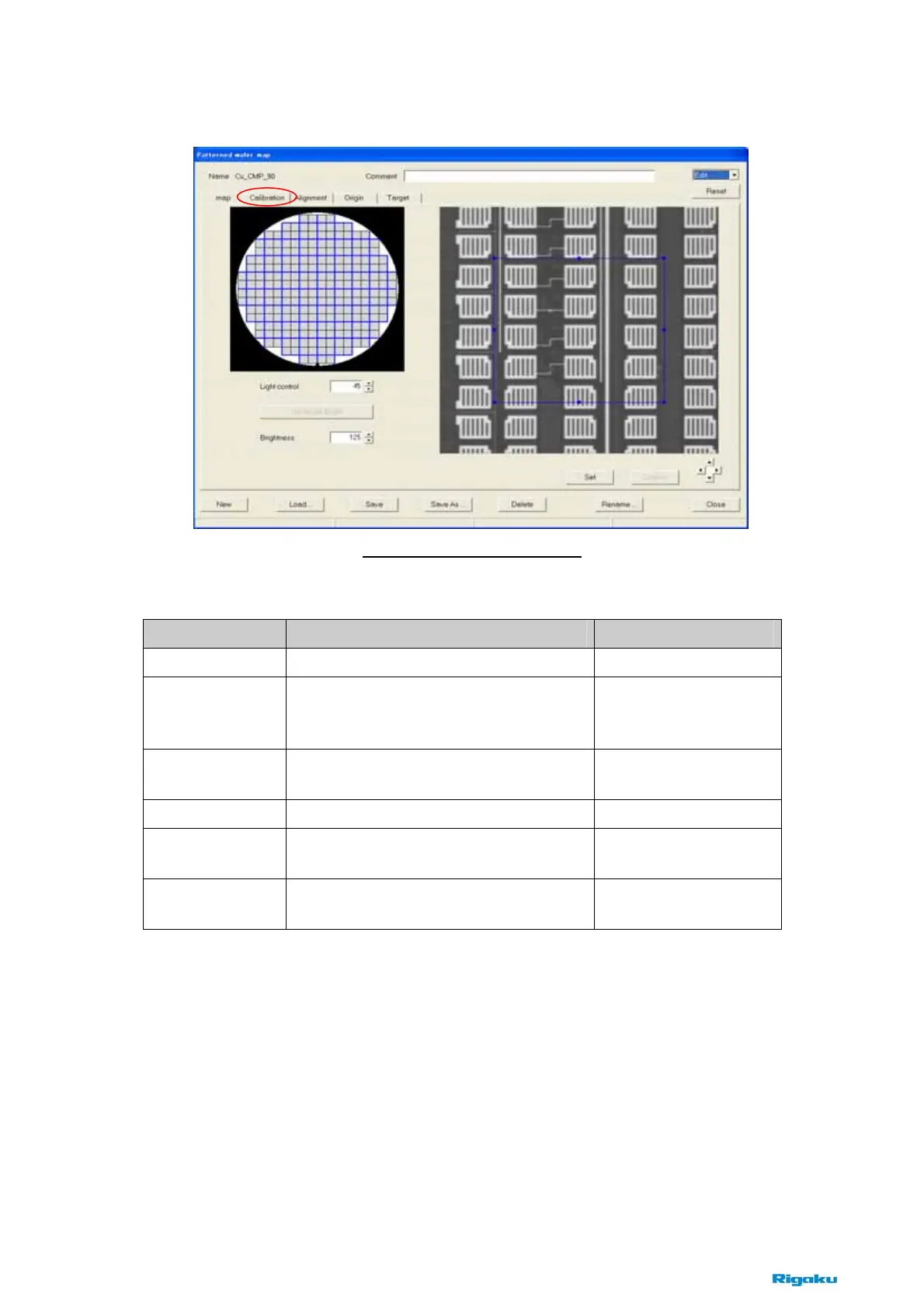 This tab is available to set the brightness conditions on the wafer for the pattern recognition.