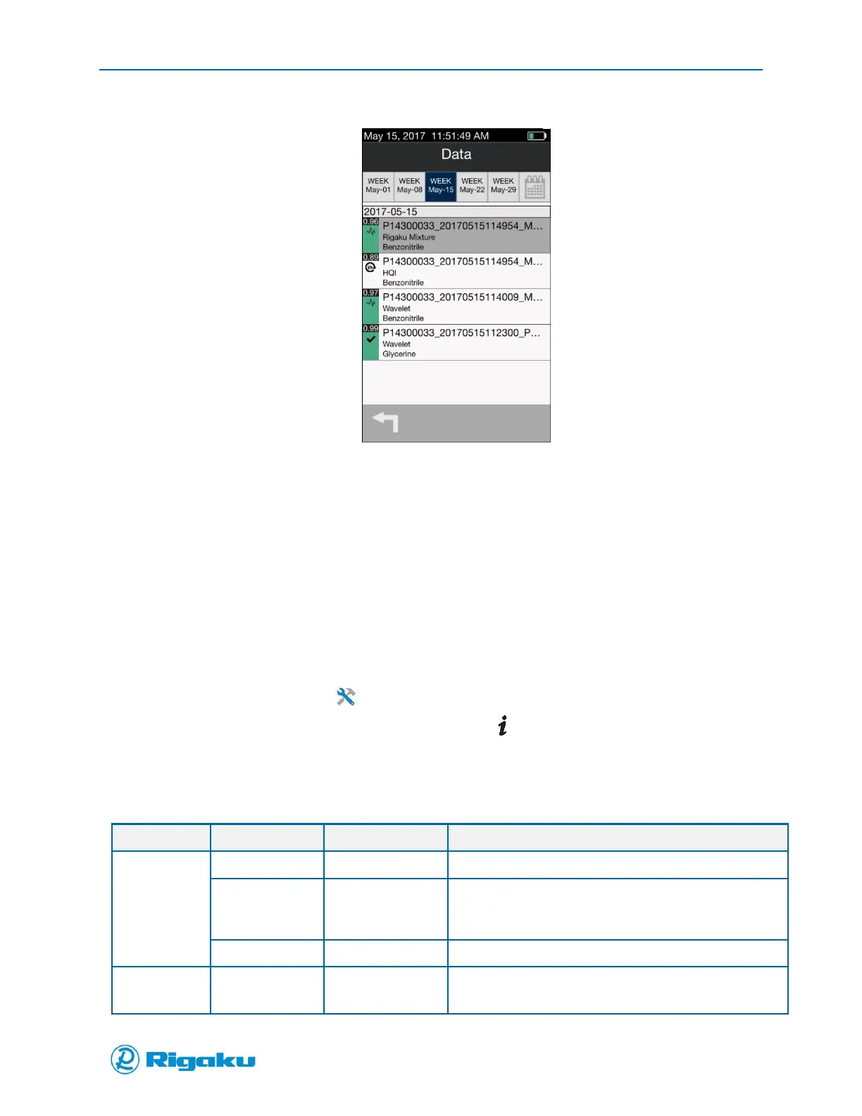 screen, and includes the instrument’s operating parameters and information that may be needed for