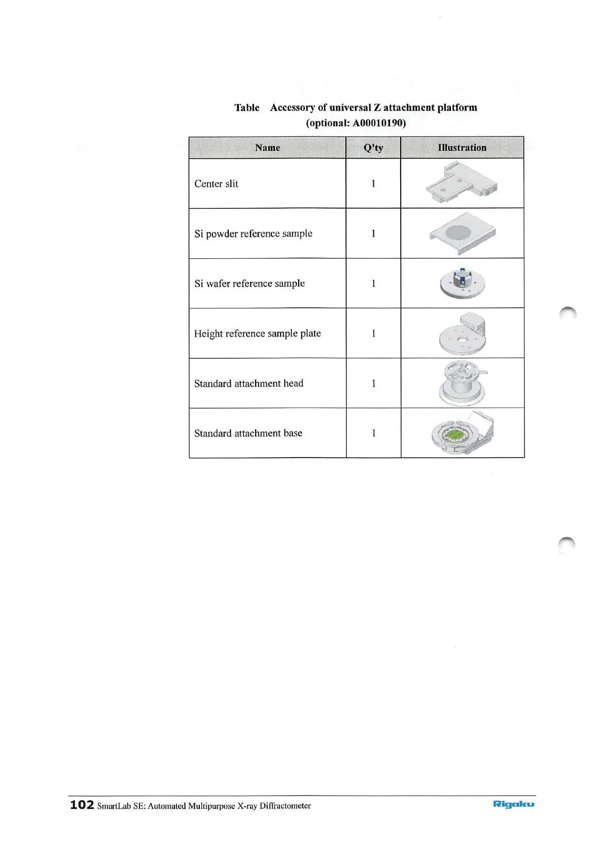 Rigaku Smartlab SE - Accessories; Accessory of Main Unit; Accessory of Fixed Sample Platform