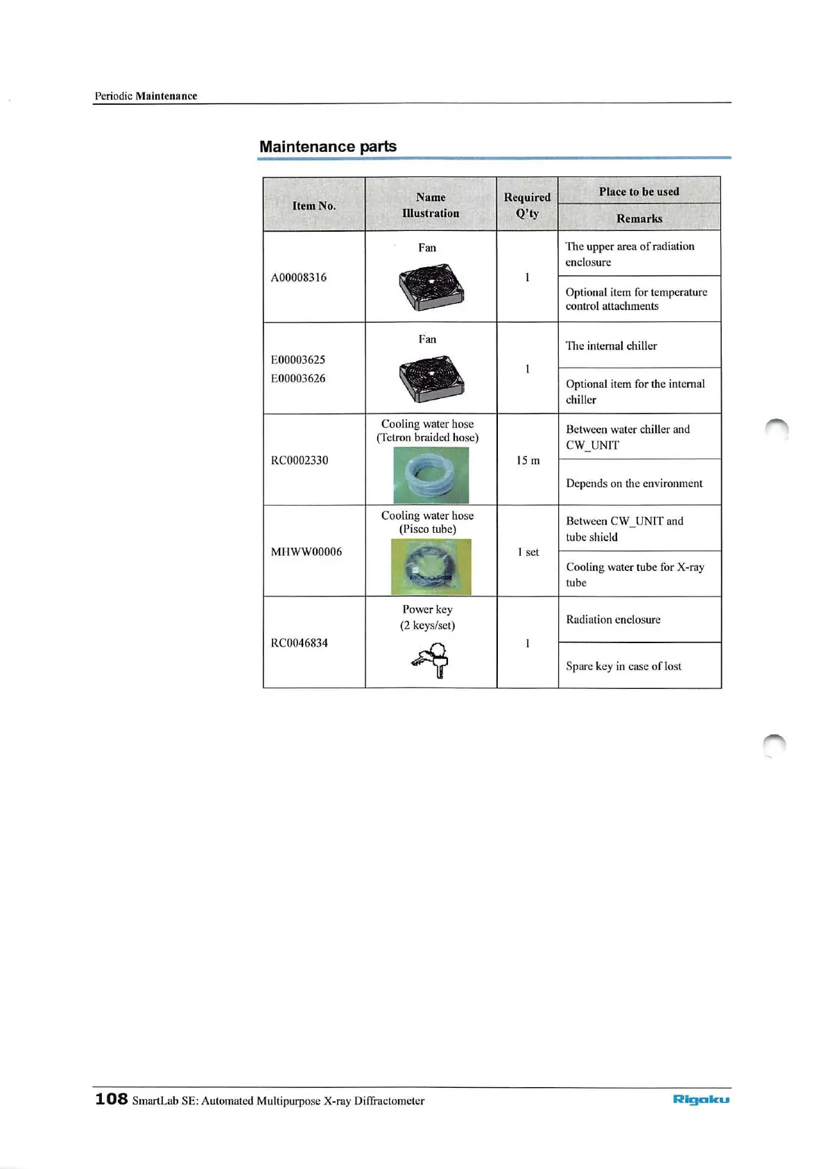 Rigaku Smartlab SE - Maintenance Parts List