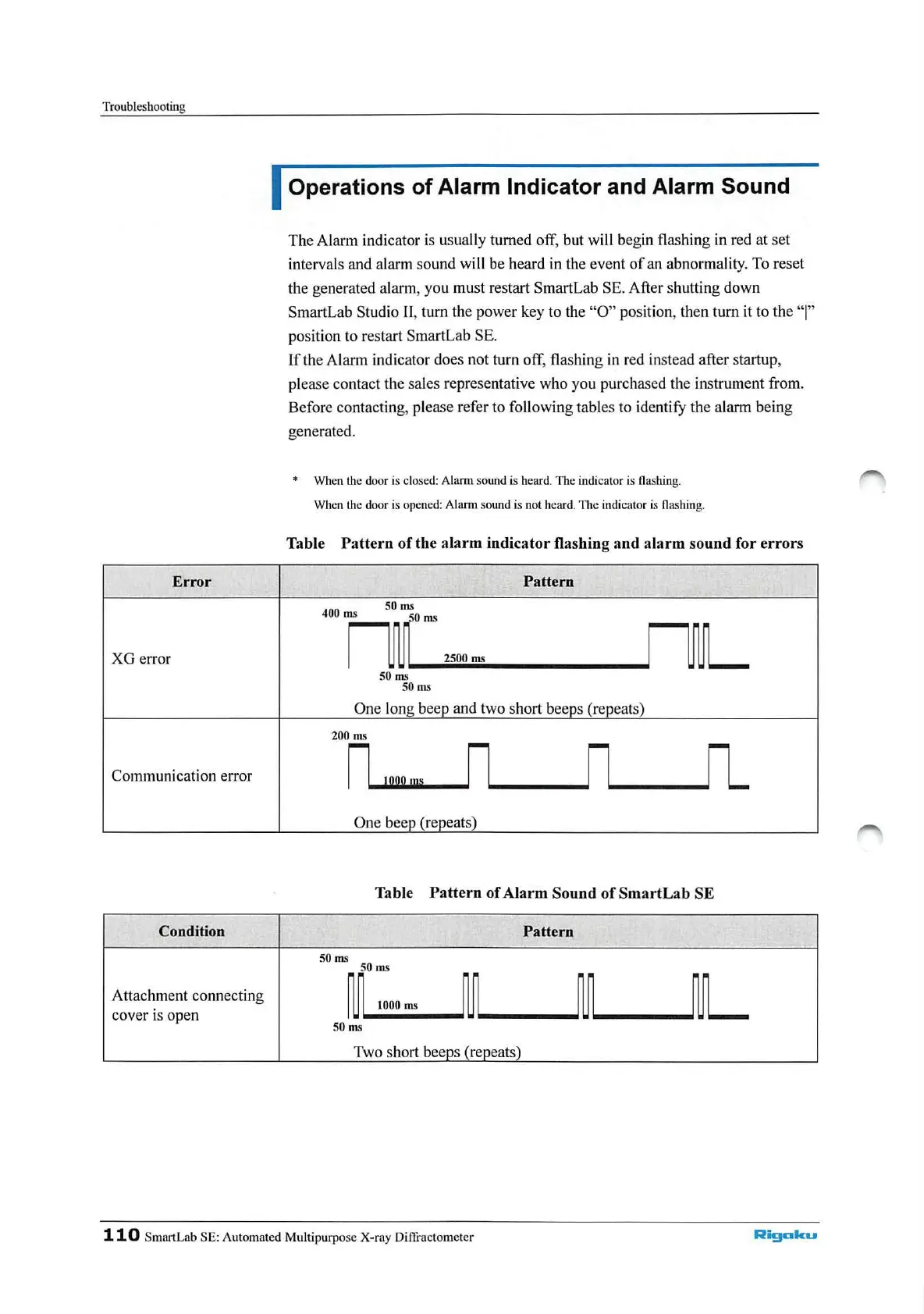 Operations of Alarm Indicator and Alarm Sound