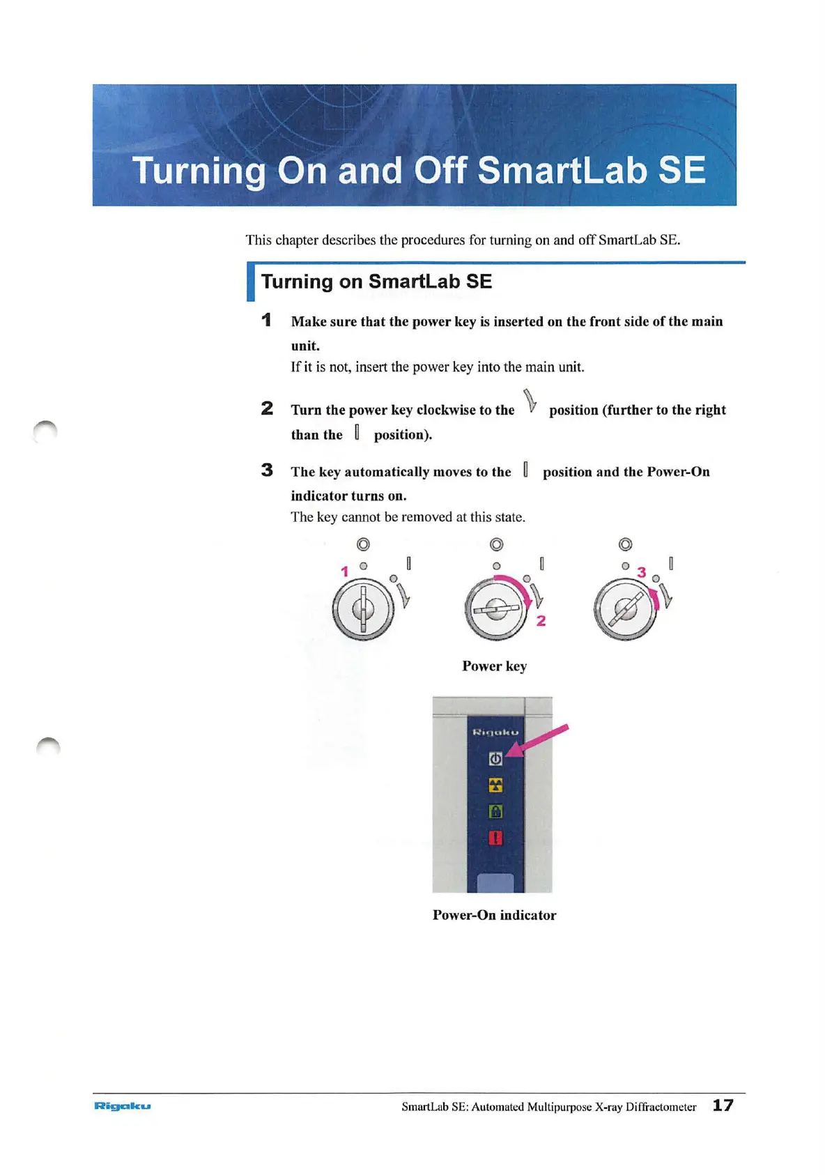 This chapter describes the procedures for turning on and